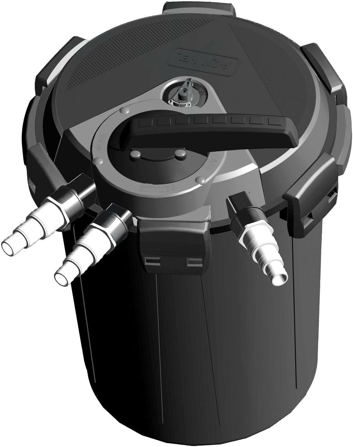 KLARPRESURE UV-trycksfilter används för omfattande behandling av vatten i vattenreservoarer med en kapacitet på upp till 8000 liter. Filtret har en trestegsfiltrering. Förutom mekanisk och biologisk filtrering steriliserar den vattnet med UVC 11W-lampan (som förhindrar vattenblomning och bekämpar alger och farliga parasiter). Det maximala flödet är 4000 l/h.