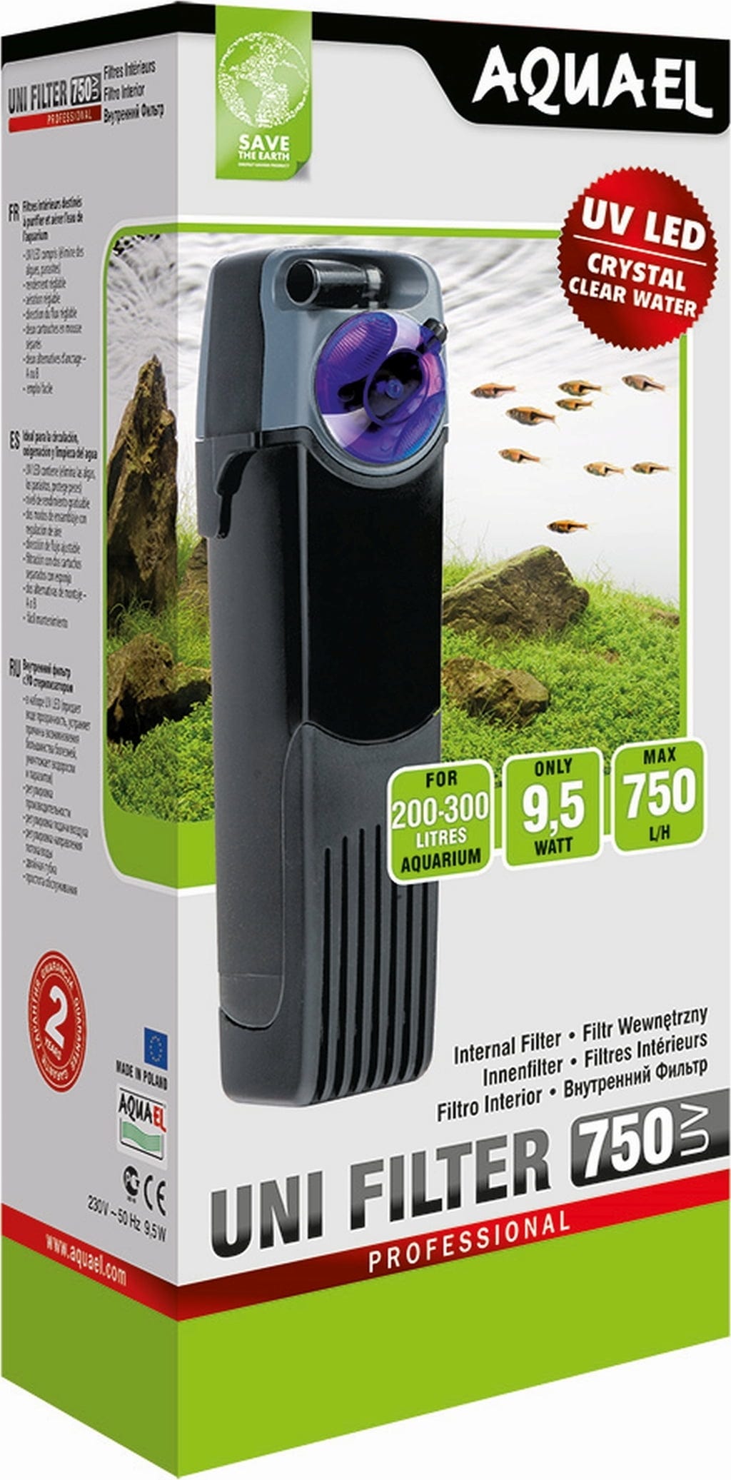 AQUAEL UNIFILTER UV används för att rena och lufta akvarievatten. Förutom effektiv vattenfiltrering steriliserar apparaten vattnet med ultravioletta lysdioder. Detta förhindrar tillväxten av flytande alger, protozoer och bakterier, vilket ökar vattnets klarhet och fiskarnas hälsa. UV-lysdioder kan slås på och av oberoende av filtret.