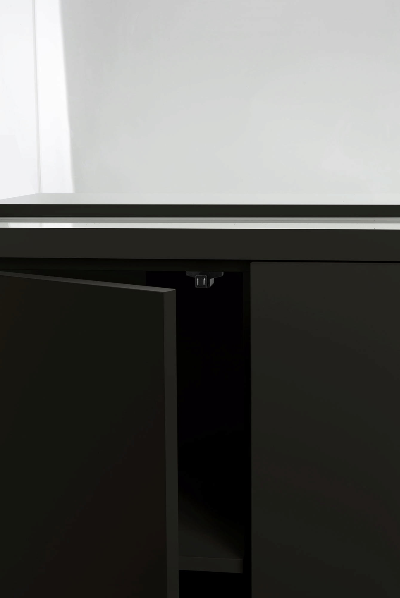 Dörrarna ligger i nivå med akvariets frontpanel och bildar en harmonisk enhet. Tack vare den praktiska push-to-open-funktionen kan dörrarna öppnas utan handtag. För att öppna dem trycker du bara på dem så svänger de upp lite grann.
