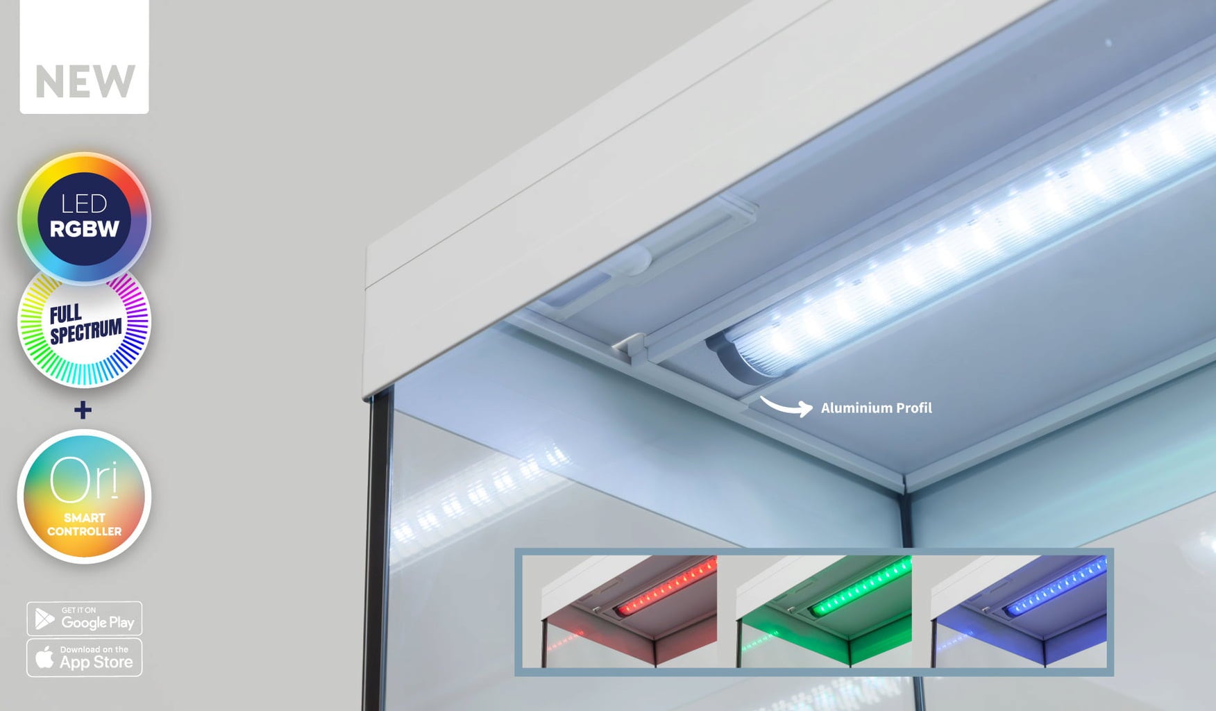 Splendid Ultra 110 är ett akvarium som är klart för omedelbar användning, har en högkvalitativ finish och är utrustat med pålitlig teknik: ett komplett LED-belysningssystem med RGBW-teknik, Biobox internt filtersystem med miljövänliga filterpatroner, värmare, pump och ORI Smart Controller ingår i leveransomfånget.