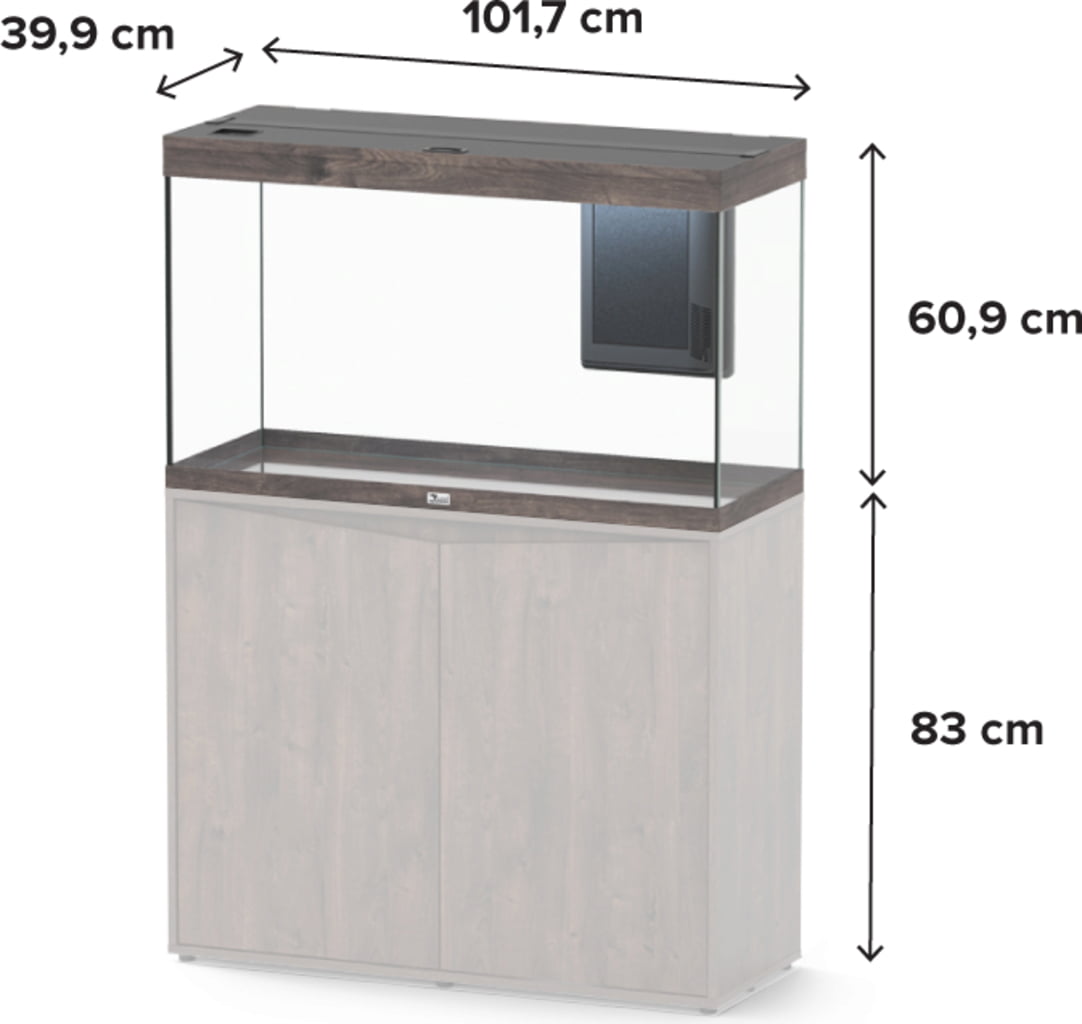 Akvariets mått (LxBxH) | 100 x 40 x 60 cm |
