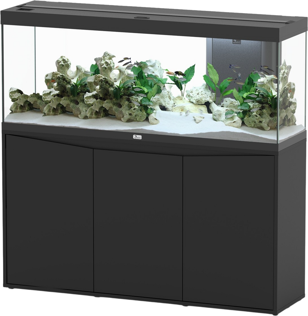Akvariekombinationen Splendid Ultra 300 från Aquatlantis ären modern kombination med högkvalitativa aluminiumprofiler och matchande underskåp. Förutom akvariet och det snygga underskåpet innehåller setet även ett komplett LED-belysningssystem med RGBW-teknik, Biobox internfiltersystem med miljövänliga filterpatroner, värmare, pump och ORI Smart Controller för enkel styrning via smartphone.