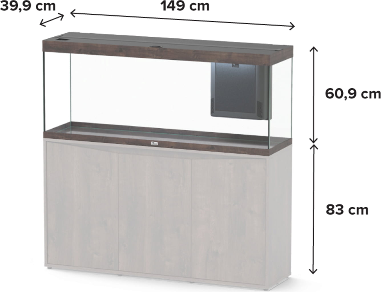Akvariets mått (LxBxH) | 149 x 40 x 61 cm |
