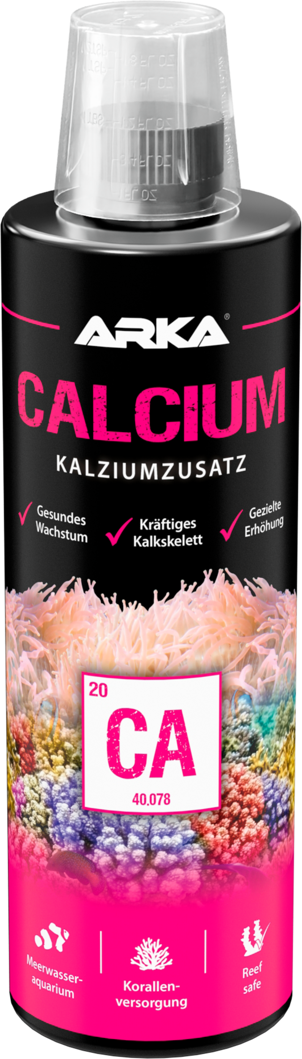 Doseringsråd: Tillsätt 5 ml till 100 liter vatten för att öka kalciumhalten med 5,0 mg/L. (I tätt bestockade marina akvarier kan doseringen ske dagligen)