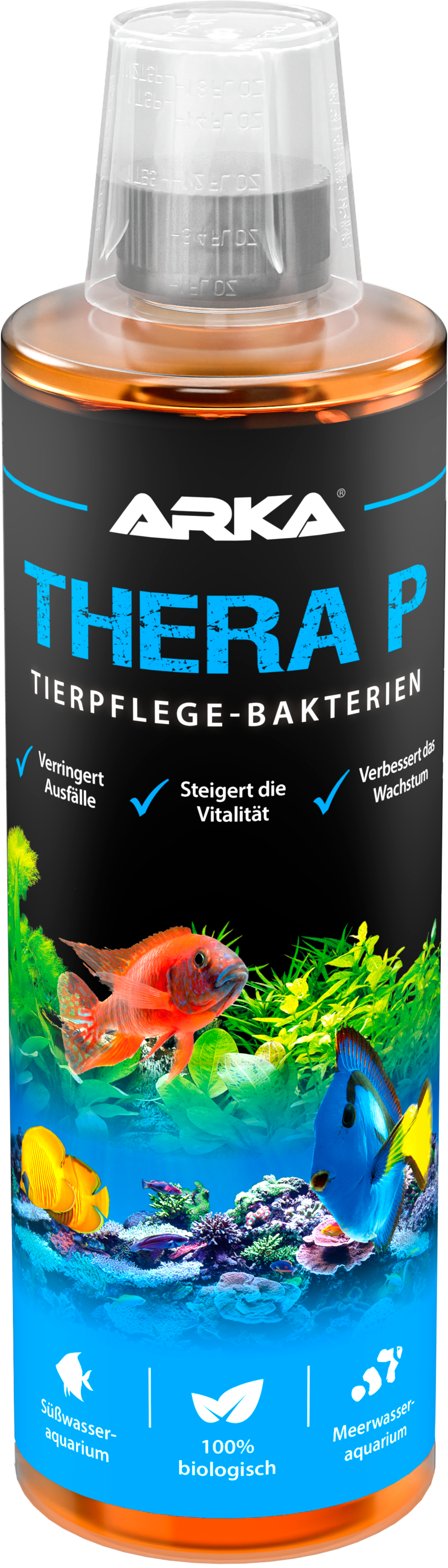 Thera P har utformats speciellt för att främja tillväxt, hälsa och välbefinnande hos alla djur i sötvatten- eller marina akvarier. Exklusivt levande och 100 % biologiska bakteriekulturer stöder tarmfloran, minskar stress och skyddar slemhinnorna. Utbrott kan minskas och vid kortvarig överbeläggning är Thera P det bästa medlet.