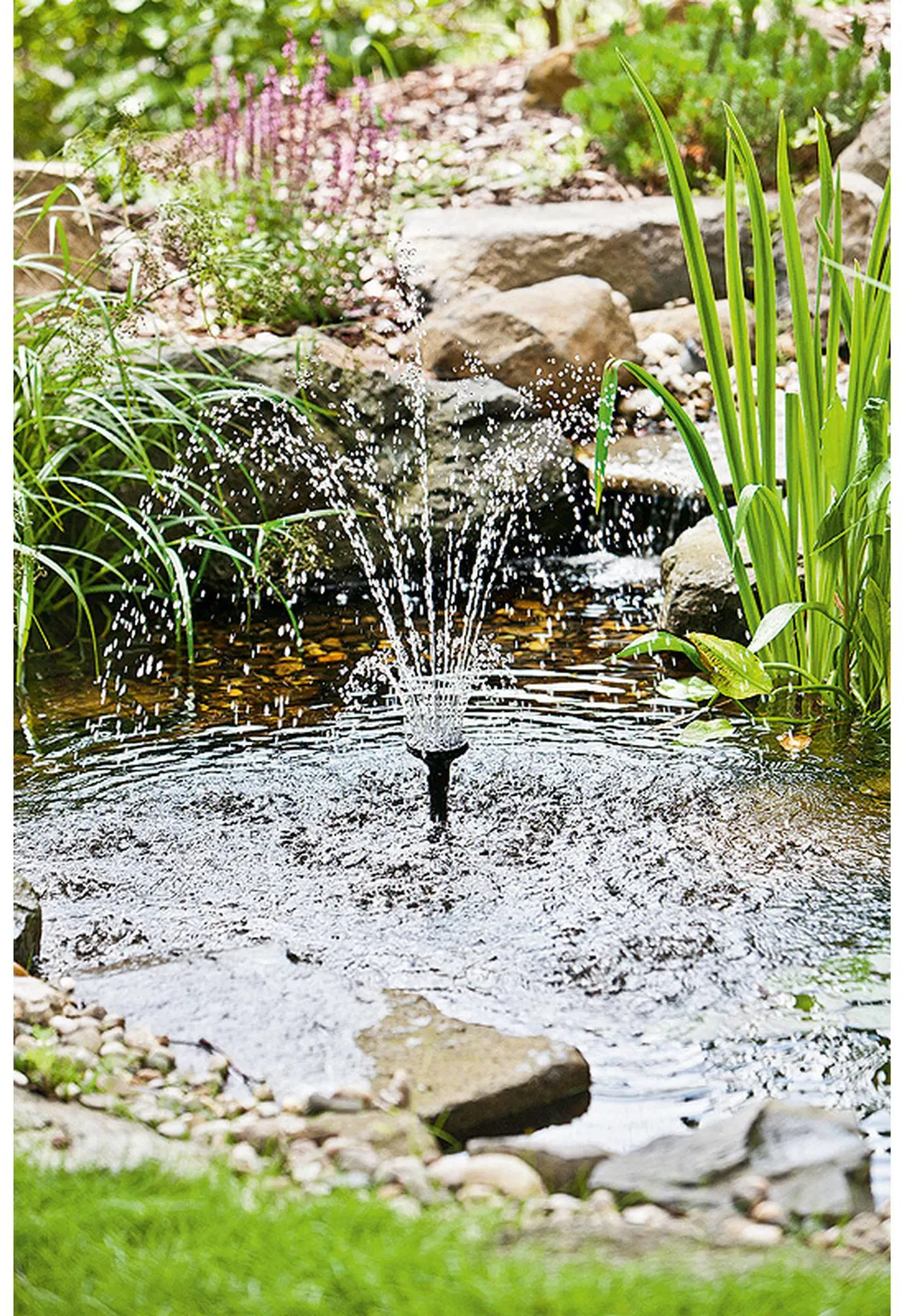 • Med solpanel, batteri & 2 vattenmunstycken