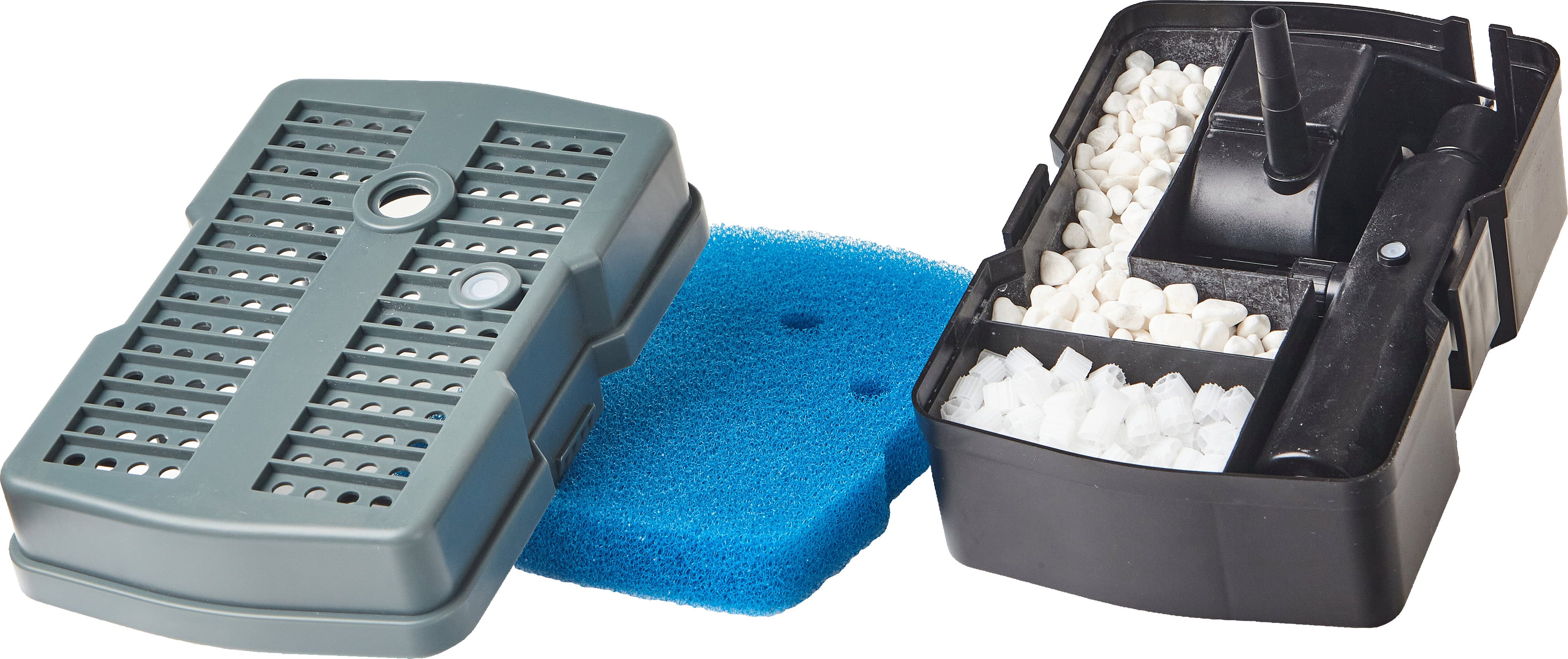 UVC-bestrålningen reducerar bakterier och motverkar effektivt svävalger, medan det stora höljet ger långa driftintervaller. Med två olika munstycken syresätts det renade vattnet och presenteras på ett dekorativt sätt.