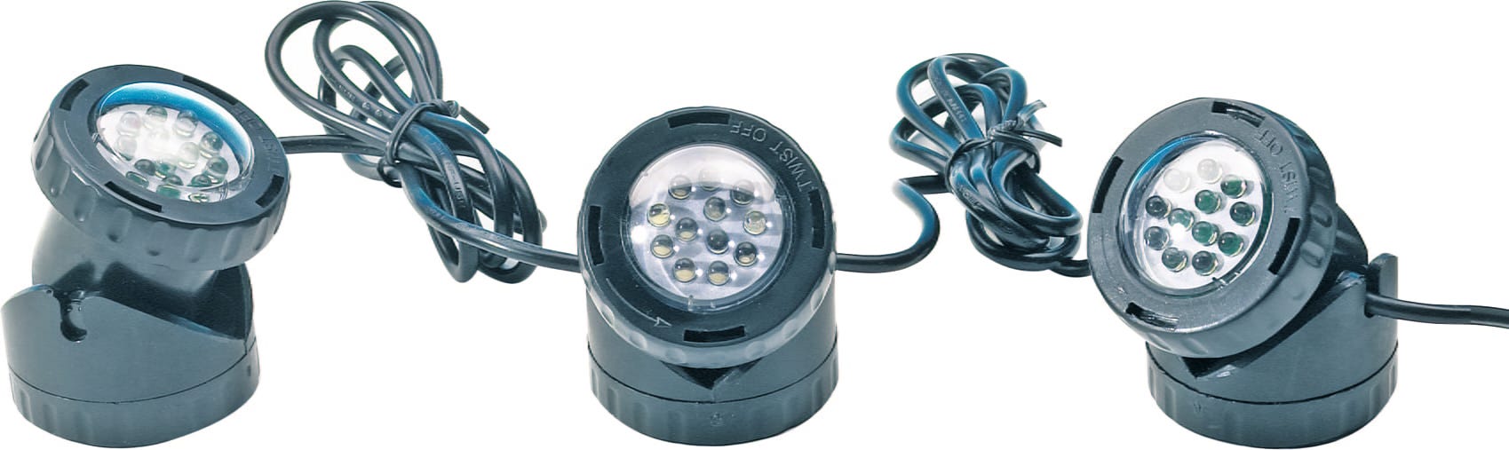 3x dammlampor med 7m anslutningskabel mellan transformator och lampa