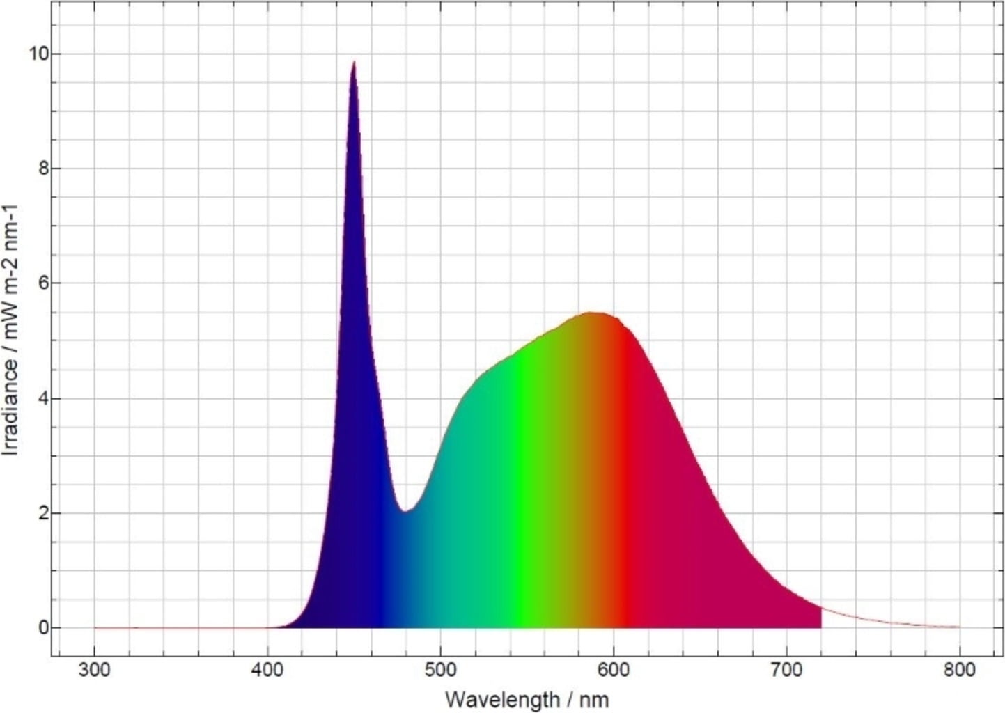 - PAR (fotosyntetisk aktiv strålning): 4,30 μmol/s/Watt