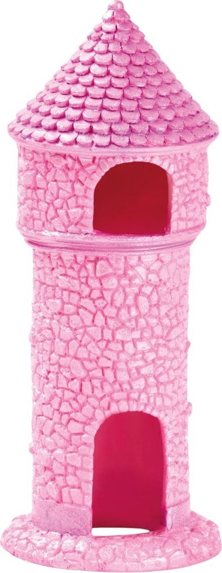 Prinsesstornet från Eden är som hämtat ur en saga – perfekt för små och stora prinsessor! Med sin skimrande rosa färg drar tornet genast blickarna till sig i ditt sötvattensakvarium. Tack vare små fönster och öppningar kan fiskar, räkor & co. gömma sig inuti – en fin balans mellan dekoration och funktion.