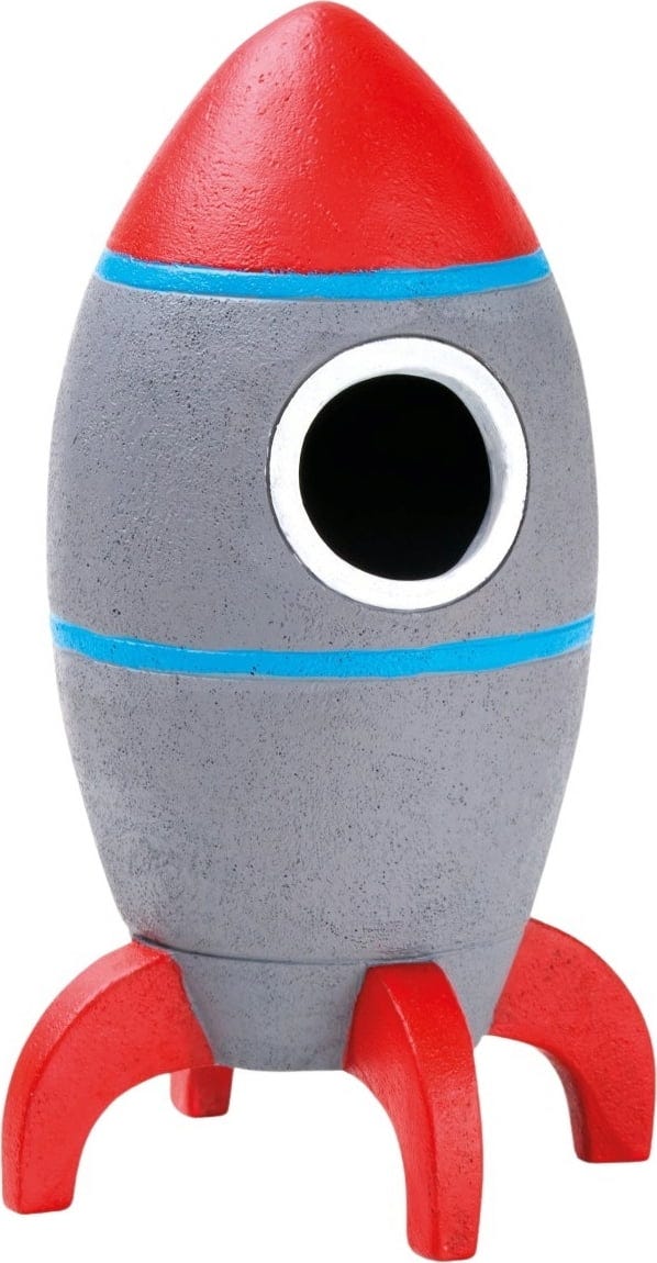 Med denna raket från Eden ger du ditt sötvattensakvarium en fantasifull rymdkänsla! Den stilrena raketen i starka röda och blå färger mäter 9,5 x 9,6 x 16 cm och blir snabbt ett riktigt blickfång. Dessutom erbjuder den en perfekt gömma för fiskar, räkor och andra små invånare.