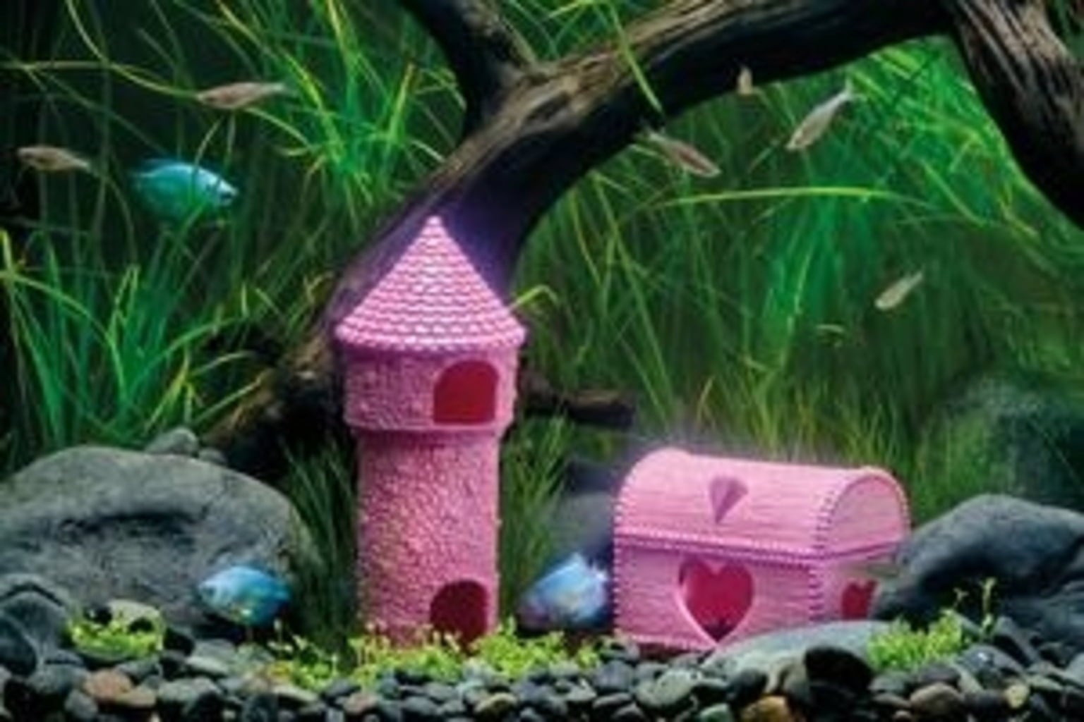 Denna skattkista från Eden passar perfekt för ett sagolikt sötvattensakvarium! I skimrande rosa drar den genast till sig uppmärksamhet och sprider en lekfull atmosfär. Med sina hjärtformade öppningar blir den dessutom ett mysigt gömställe för fiskar, räkor & co.