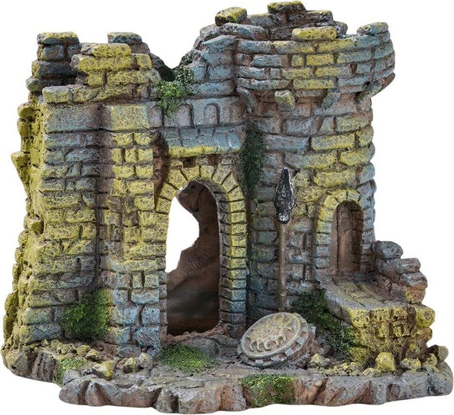 Denna lilla slottsruin med torn och port från Eden är idealisk för sötvattensakvarier och blir snabbt ett iögonfallande inslag i din undervattensvärld! Designen är rik på detaljer, med gröna mossinslag och realistiska strukturer som gör dekoren levande. Dessutom erbjuder ruinen utmärkta gömställen för dina fiskar.