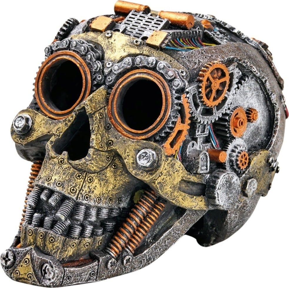 Med denna Steampunk Dödskalle från Eden blir ditt akvarium garanterat en samtalsstartare! Utrustad med detaljerade kugghjul, skruvar och mekaniska element är den inte bara en cool dekoration – den fungerar även som ett utmärkt gömställe för dina fiskar.