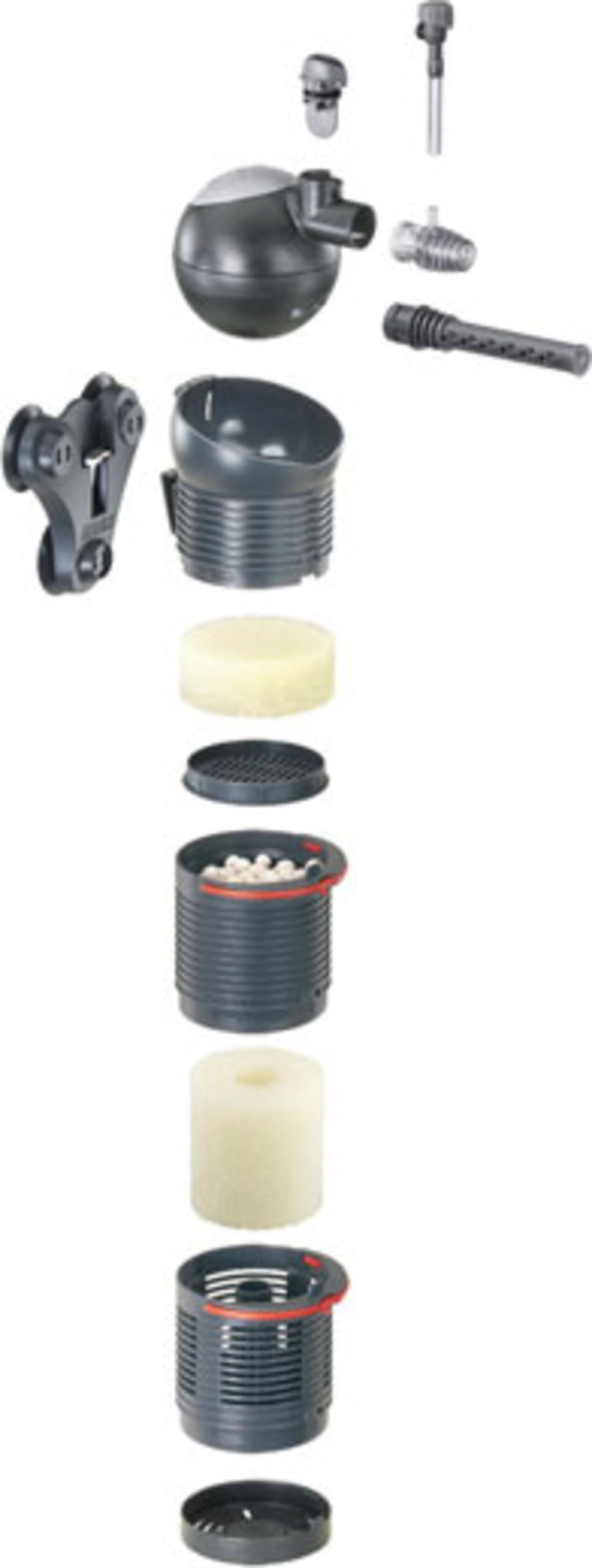 Det speciella med biopower är att den erbjuder flerstegsfiltrering som ett externt filter. De slutna filterkorgarna är fyllda med högeffektivt filtermaterial (t.ex. SUBSTRATpro). I botten finns intagskorgen med filterpatron för mekanisk-biologisk förfiltrering. Det vatten som sugs in i botten pumpas upp genom de olika filterlagren och renas slutligen och leds tillbaka till akvariet.