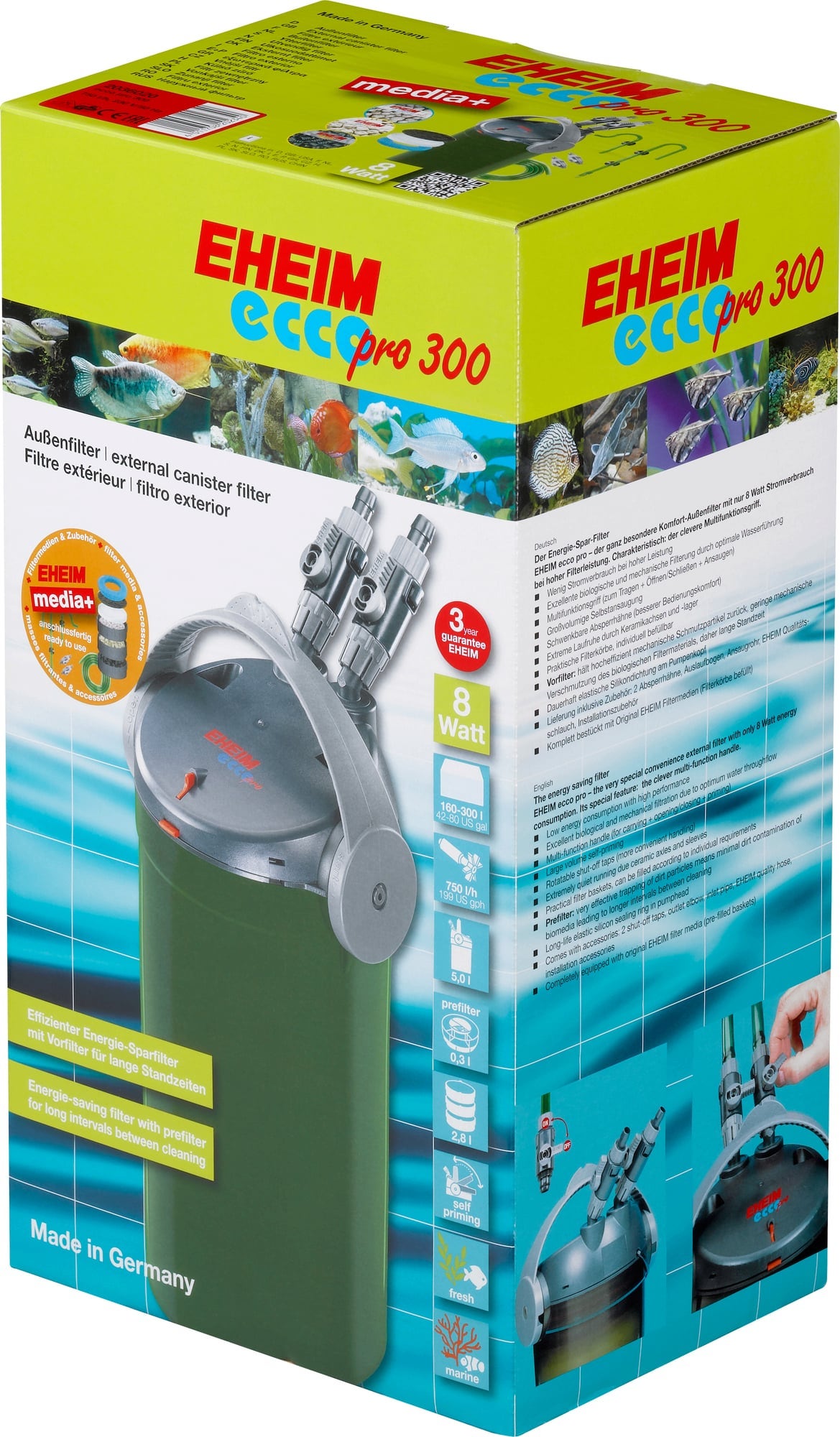 EHEIM ecco pro kombinerar ett exceptionellt helhetskoncept för energibesparing, prestanda och komfort: det externa filtret förbrukar endast 5 watt vid en pumpkapacitet på 600 liter per timme, eller 8 watt vid 750 liter. Det är mycket ovanligt. Precis som det karakteristiska multifunktionshandtaget, eftersom det kombinerar tre uppgifter samtidigt: bära, öppna/stänga och suga. Dessutom finns de svängbara stoppkranarna, de praktiska filterkorgarna och den mycket speciella tysta driften tack vare de keramiska komponenterna. Du kan börja direkt med ecco pro, eftersom den levereras fullt utrustad - inklusive filtermaterial och tillbehör! Det optimala vattenflödet möjliggör utmärkt biologisk och mekanisk filtrering. Det extra förfiltret ger en längre livslängd för de andra filtermaterialen, som du kan utrusta individuellt. Tack vare den permanent elastiska silikontätningen på pumphuvudet kan du känna dig helt trygg.