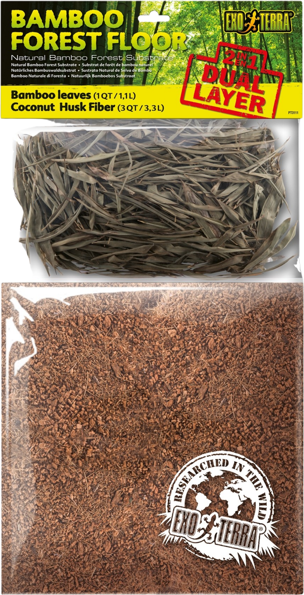 Substratet består av två lager, som vanligtvis finns i djurens naturliga livsmiljöer. Det översta lagret innehåller dekorativa, soltorkade bambublad som replikerar det mjuka golvet. Bambubladen är biologiskt nedbrytbara, komposterbara och fria från kemikalier.