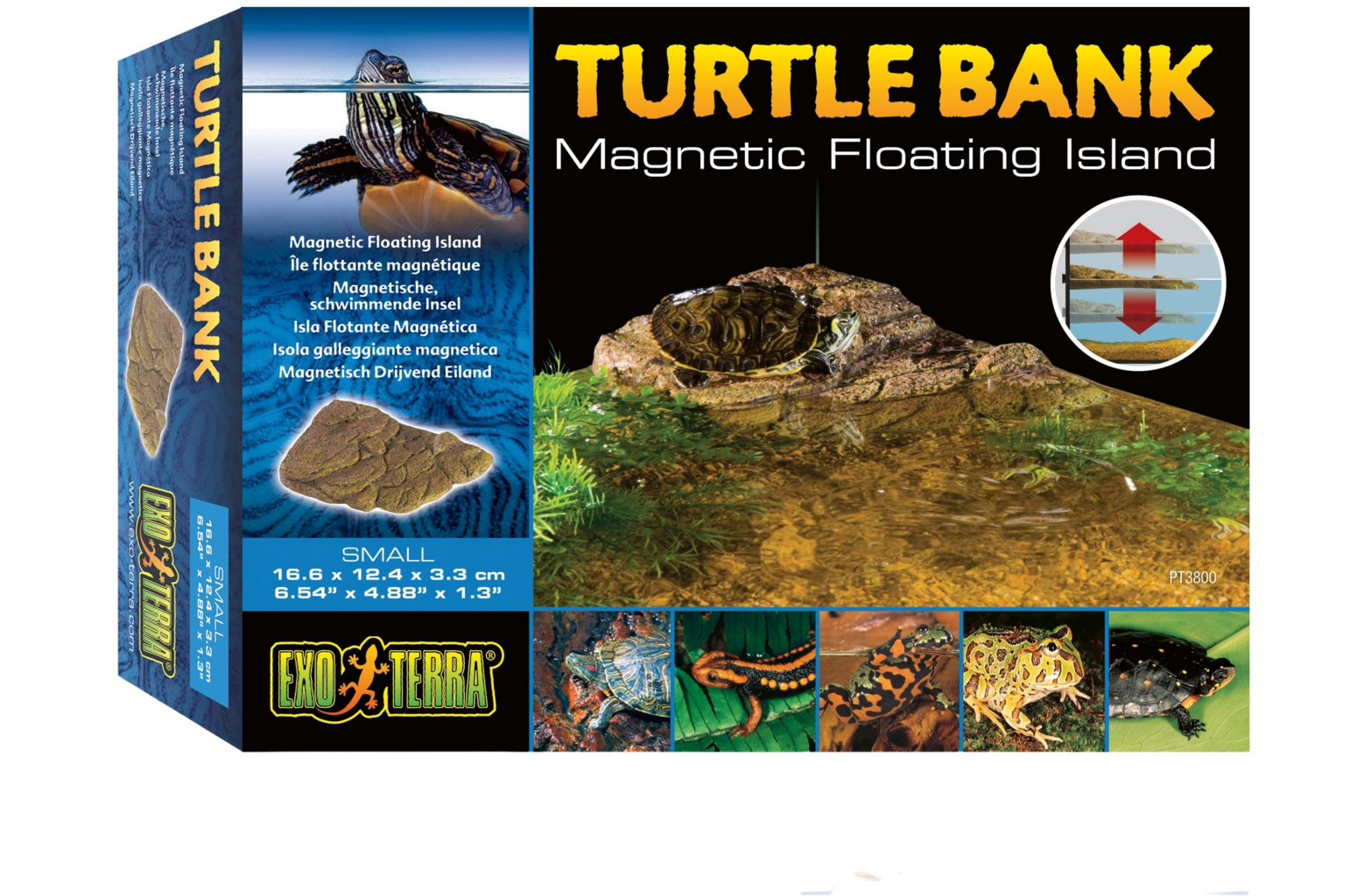 Flytande öformation för vattenlevande sköldpaddor. Sköldpaddsön är placerad i vilket hörn av sköldpaddstanken som helst med hjälp av magnetfäste - den anpassar sig optimalt till alla vattennivåer. Turtle Island har en undervattensramp som gör det lätt för djur att klättra upp på den torra öformationen ovanför vattnet och sola eller koppla av som de vill.