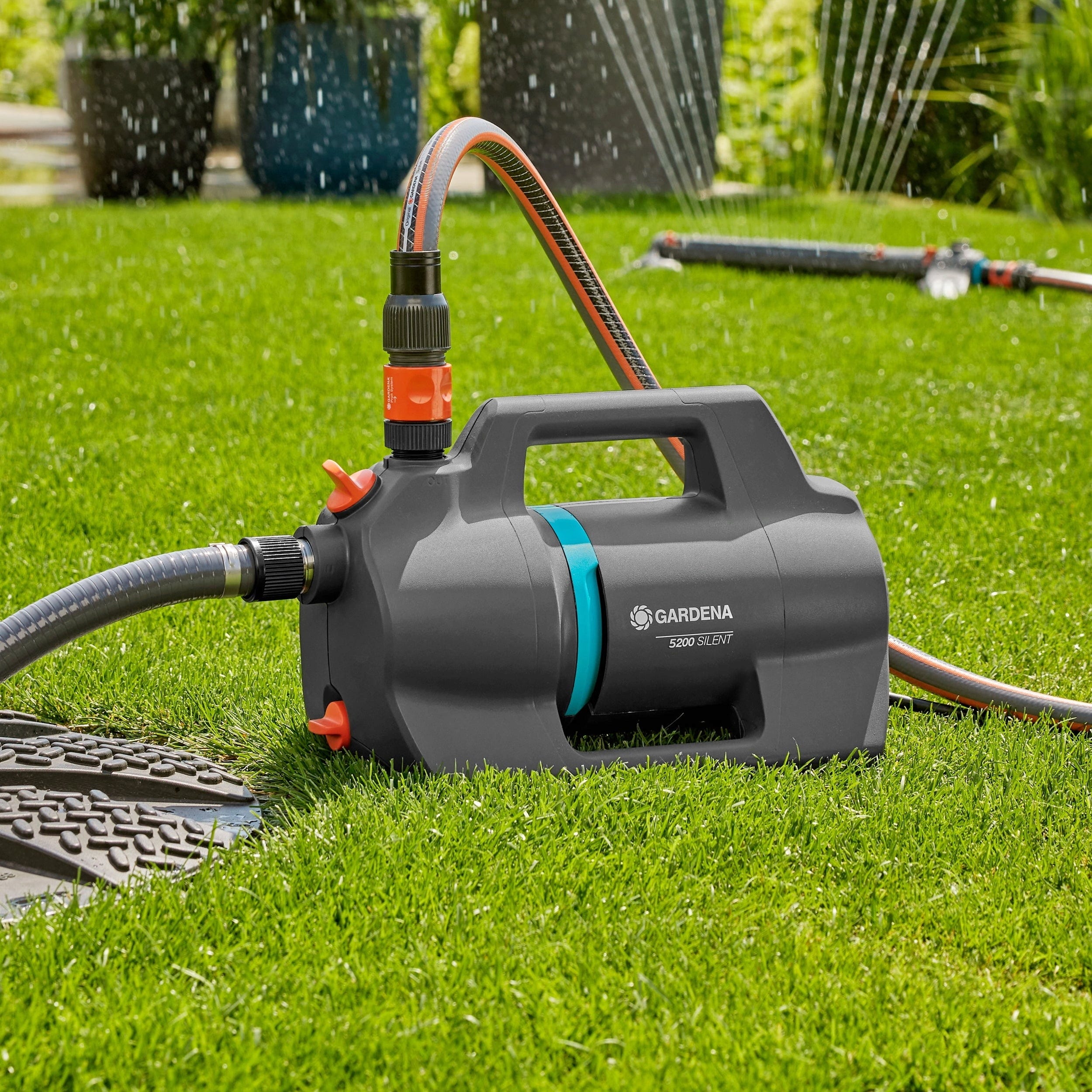 Med trädgårdspump 5200 Silent Set från GARDENA blir bevattningen av din trädgård enklare än någonsin! Du får ett perfekt anpassat system som kraftfullt transporterar vatten från brunnar eller cisterner dit dina växter behöver det som mest. Hjärtat i systemet är den innovativa hydrauliken som levererar imponerande kapacitet trots lägre energiförbrukning och därmed arbetar betydligt effektivare än jämförbara tidigare modeller. Tack vare den speciella Silent-teknologin arbetar enheten så tyst att du kan njuta av tiden utomhus utan störande bakgrundsljud!