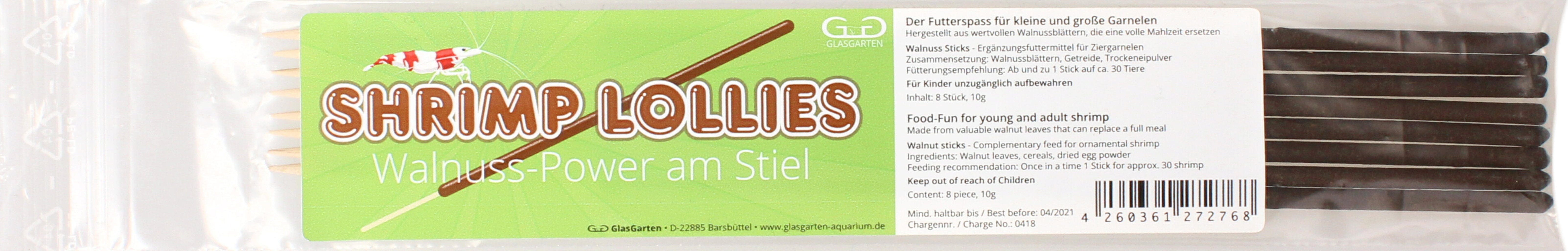 Garnelenhaus GlasGarten Shrimp Lollies, Walnuss (8 st.)