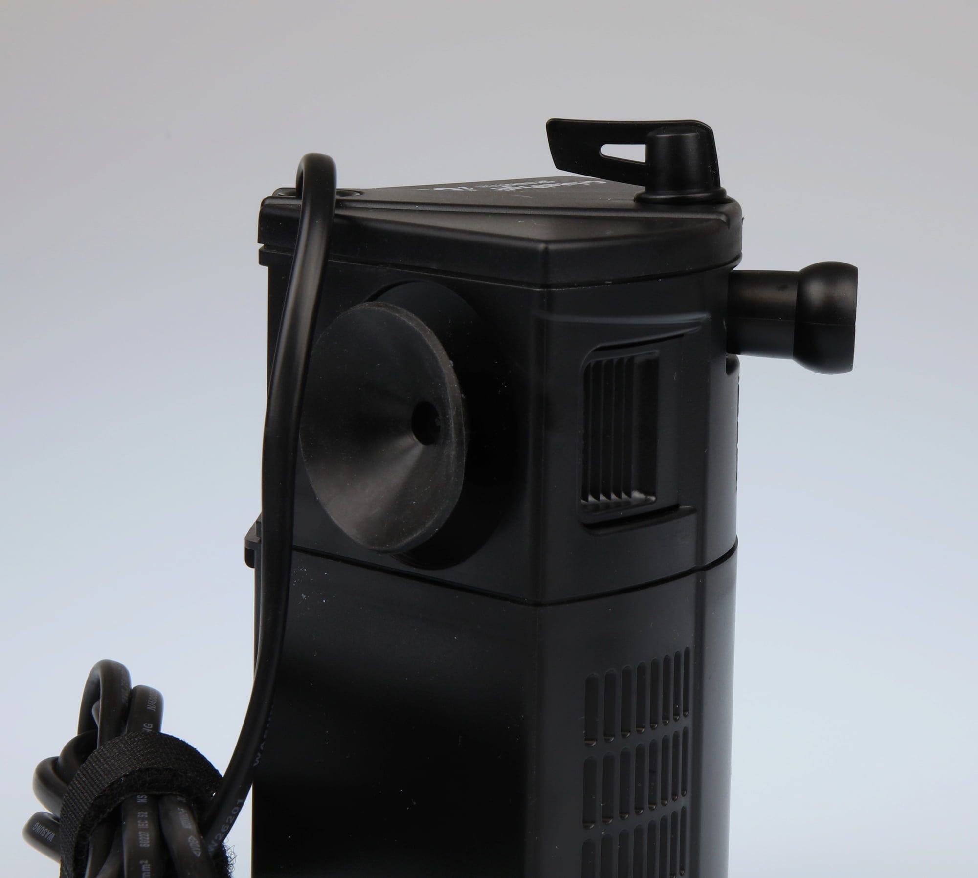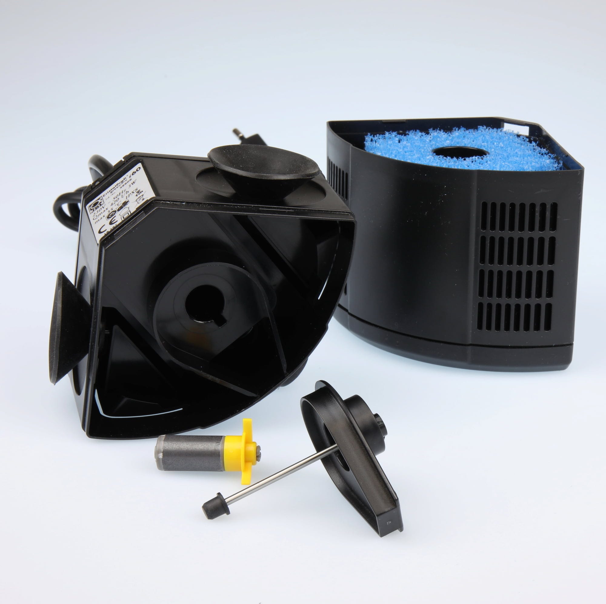 Det interna filtret är helt klart för anslutning och utrustat med filtermedia. Anslut filtret till ett bredstrålande munstycke eller ett munstyckesrör. Placera filtret i akvariet och anslut nätkontakten. När du tömmer filtret kommer inget smutsigt vatten in i akvariet. Alla filtermaterial kan användas. CristalProfi i har en elegant hörnform.