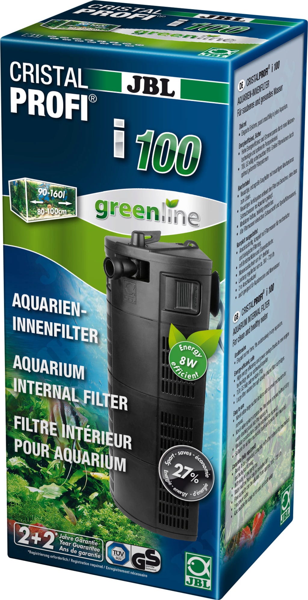 JBL ProCristal greenline internfilter är ett energieffektivt filter för akvarier och säkerställer kristallklart och syrerikt vatten med justerbar pumpprestanda.