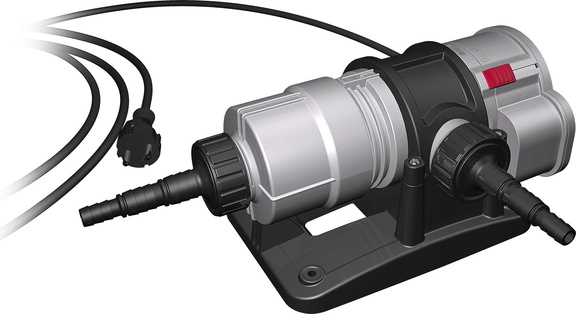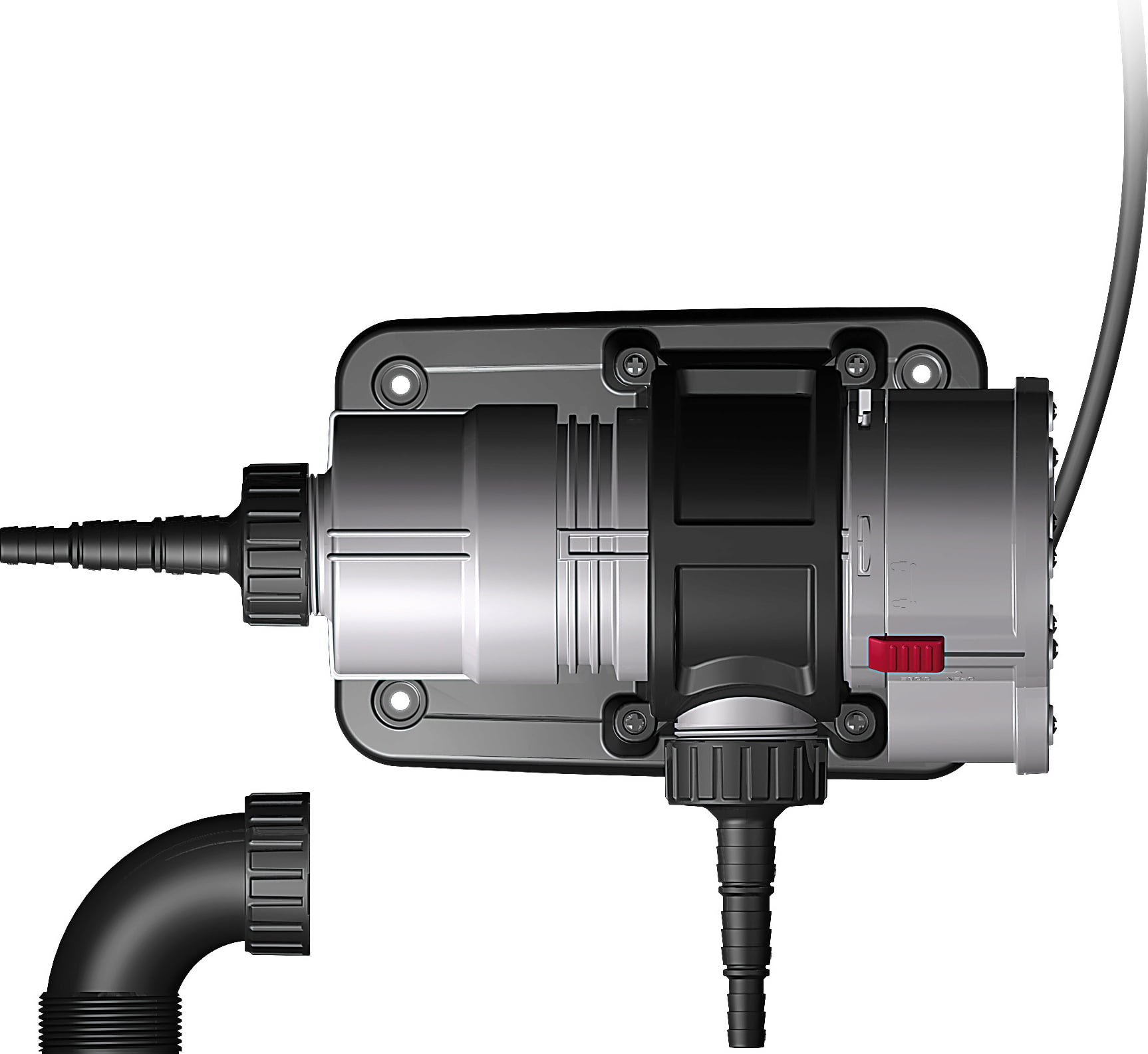 Anslut vattenrenaren till det externa filtret eller en separat vattenpump. Tack vare den medföljande 90°-vinkeln kan alla önskade installationspositioner uppnås.