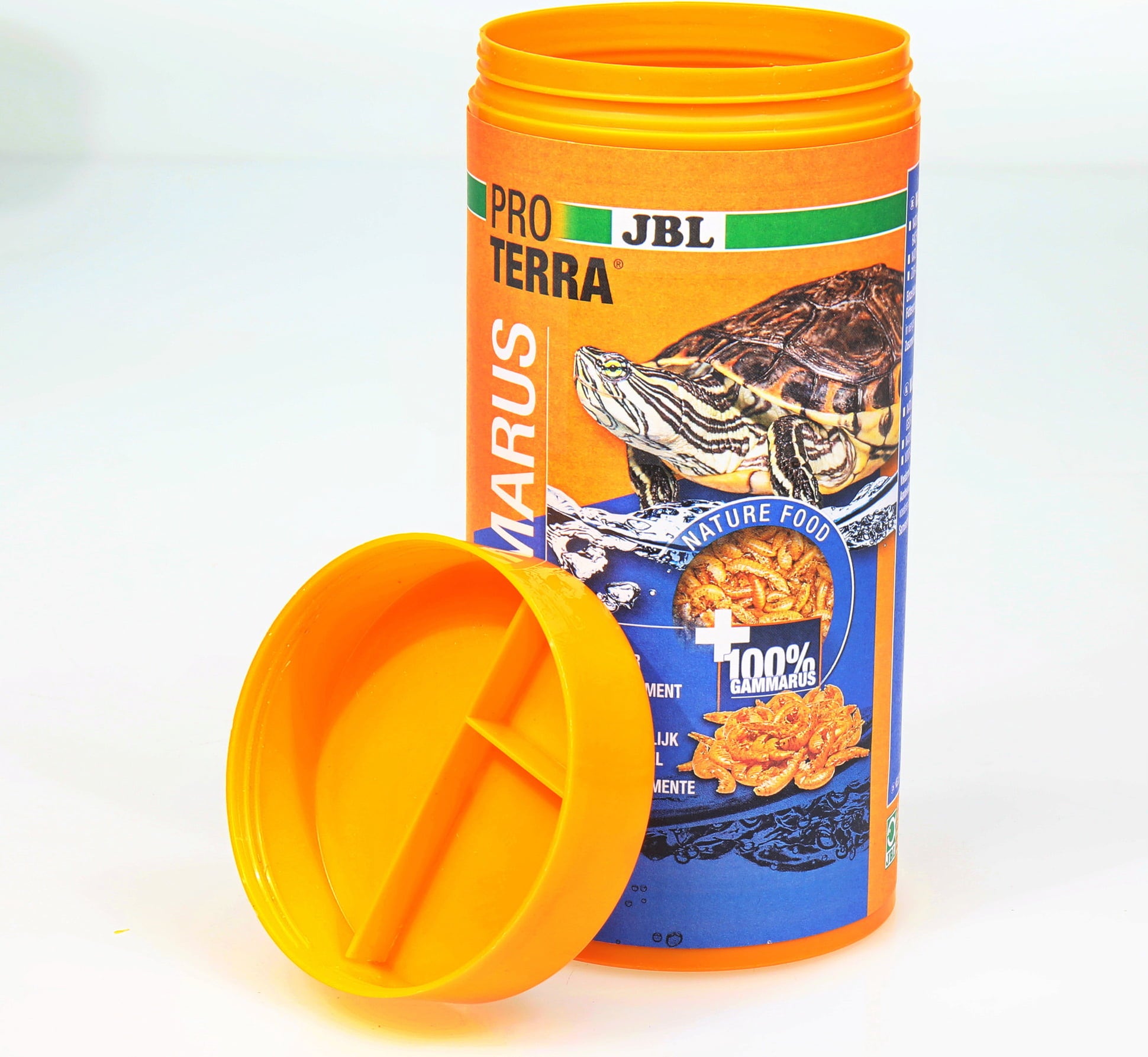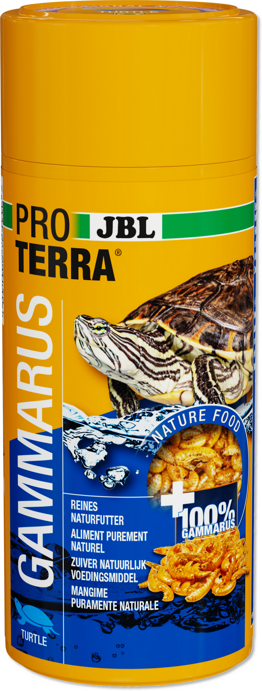För att på bästa sätt täcka vattensköldpaddors och dammsköldpaddors näringsbehov har JBL utvecklat sin PROTERRA Gammarus, ett foder som endast innehåller rengjorda och naturligt torkade sötvattensräkor (Gammarus) med en längd på ca 1-1,5 cm.