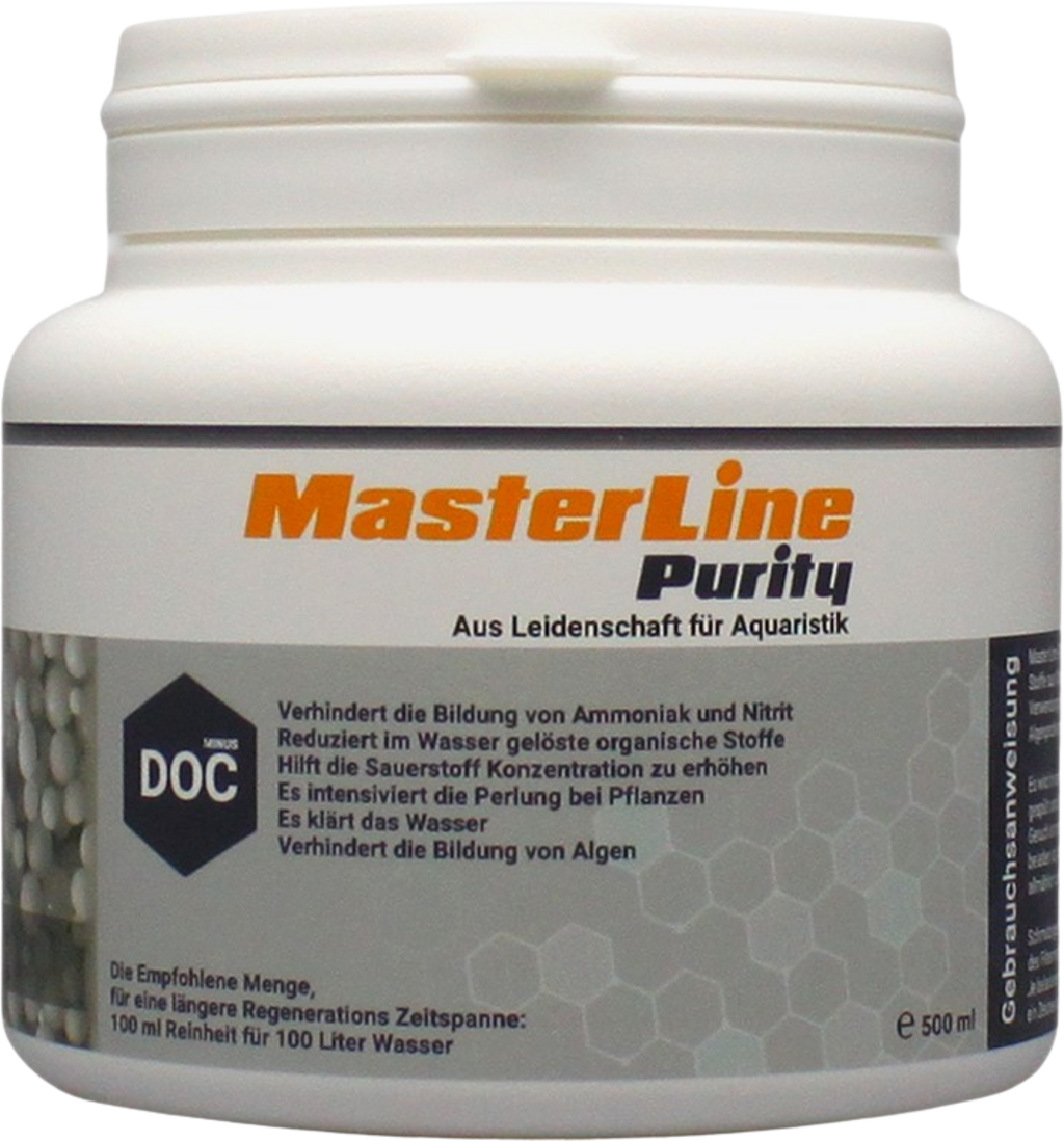 Rent vatten utan ammoniak- och nitritföroreningar främjar välbefinnandet hos alla akvarieinvånare - både djur och växter. MasterLine Purity är ett filtermedium som löser upp organiska ämnen från vattnet. Resultatet: klart vatten, minskad algbildning och ökad syrekoncentration. Effekten intensifierar växternas perkolation.
