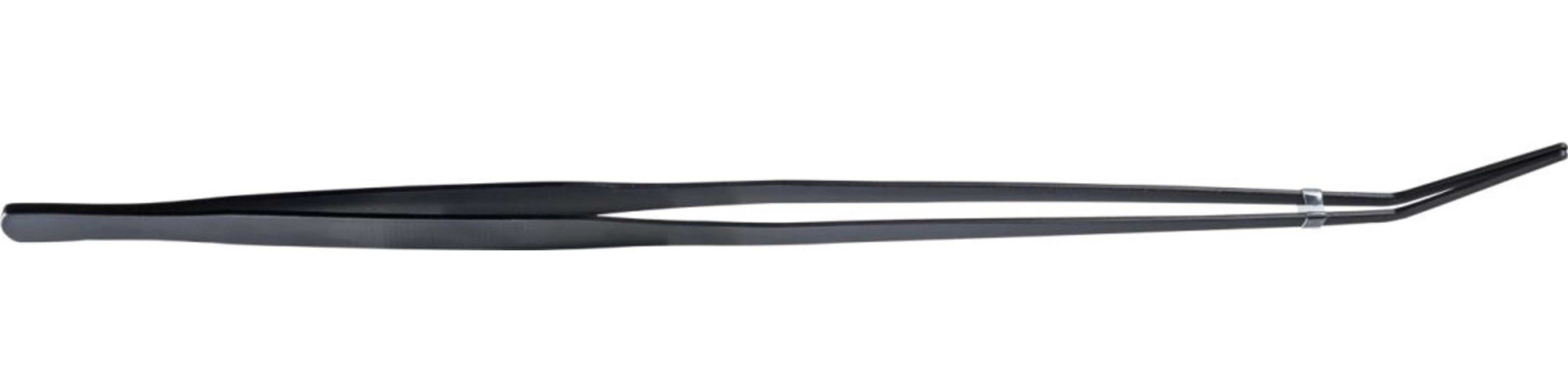 Pincetten är tillverkad av slitstarkt, rostfritt stål och har en elegant svart ytbeläggning. Denna finish ger ett professionellt utseende och förbättrar dessutom greppet vid användning.