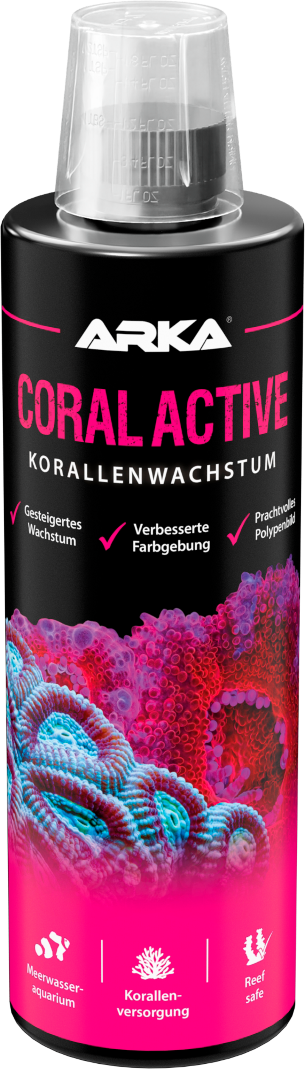 Coral Active främjar en sund och kraftig tillväxt av ryggradslösa djur och koraller i alla marina akvarier genom att stödja utvecklingen av kalciumskelettet och säkerställa ett magnifikt polyputseende och livfulla färger. Eftersom den innehåller alla element som är viktiga för tillväxten, t.ex. jod, magnesium, kalcium och ren aragonit, ger den ryggradslösa djur optimala underhållsförhållanden.