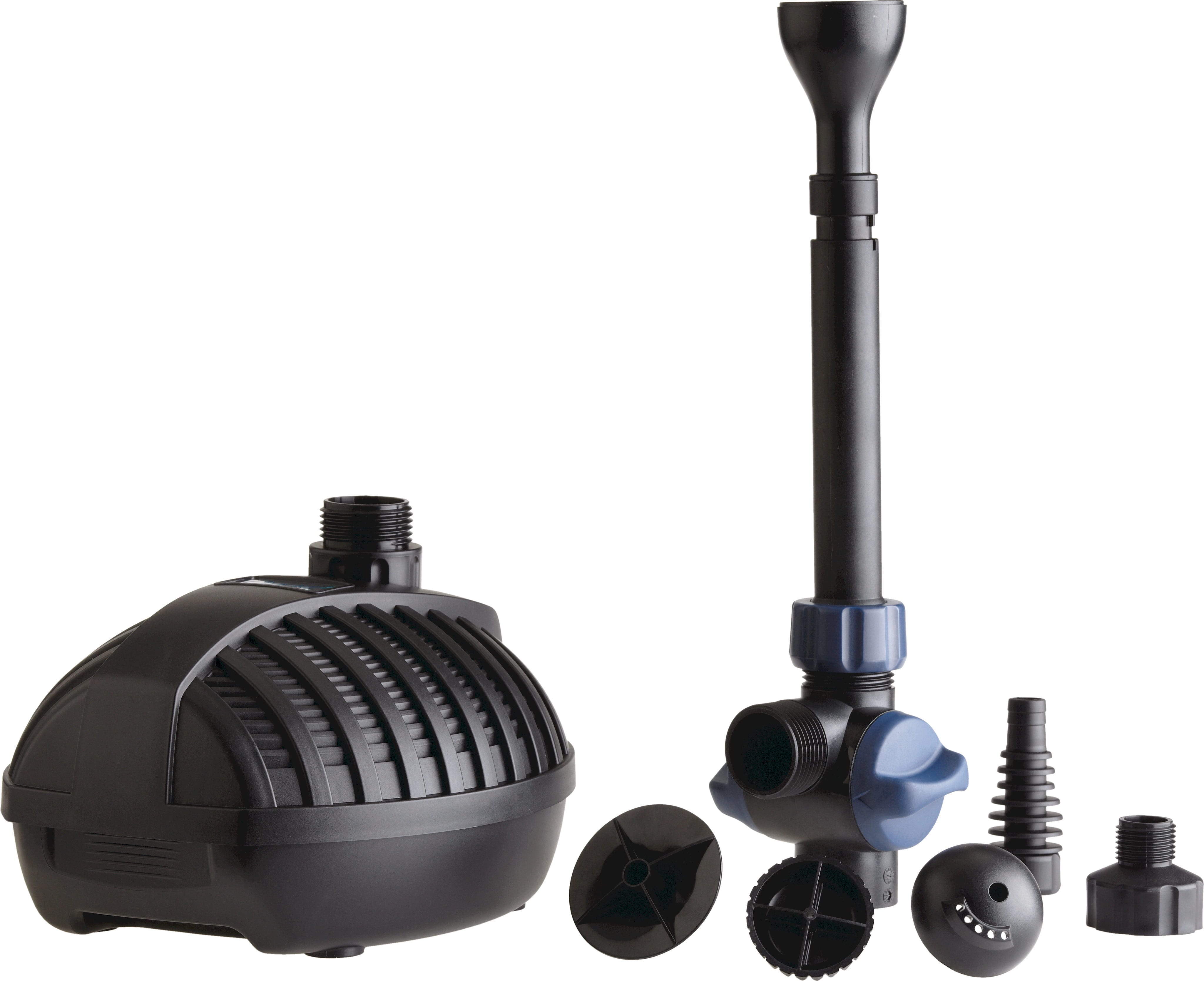 Den extra, separat reglerbara utgången gör det möjligt att ansluta en mindre bäck eller ett dekorativt vatteninslag. Ett inbyggt termiskt skydd skyddar pumpen mot överbelastning och ger trygg drift över tid.