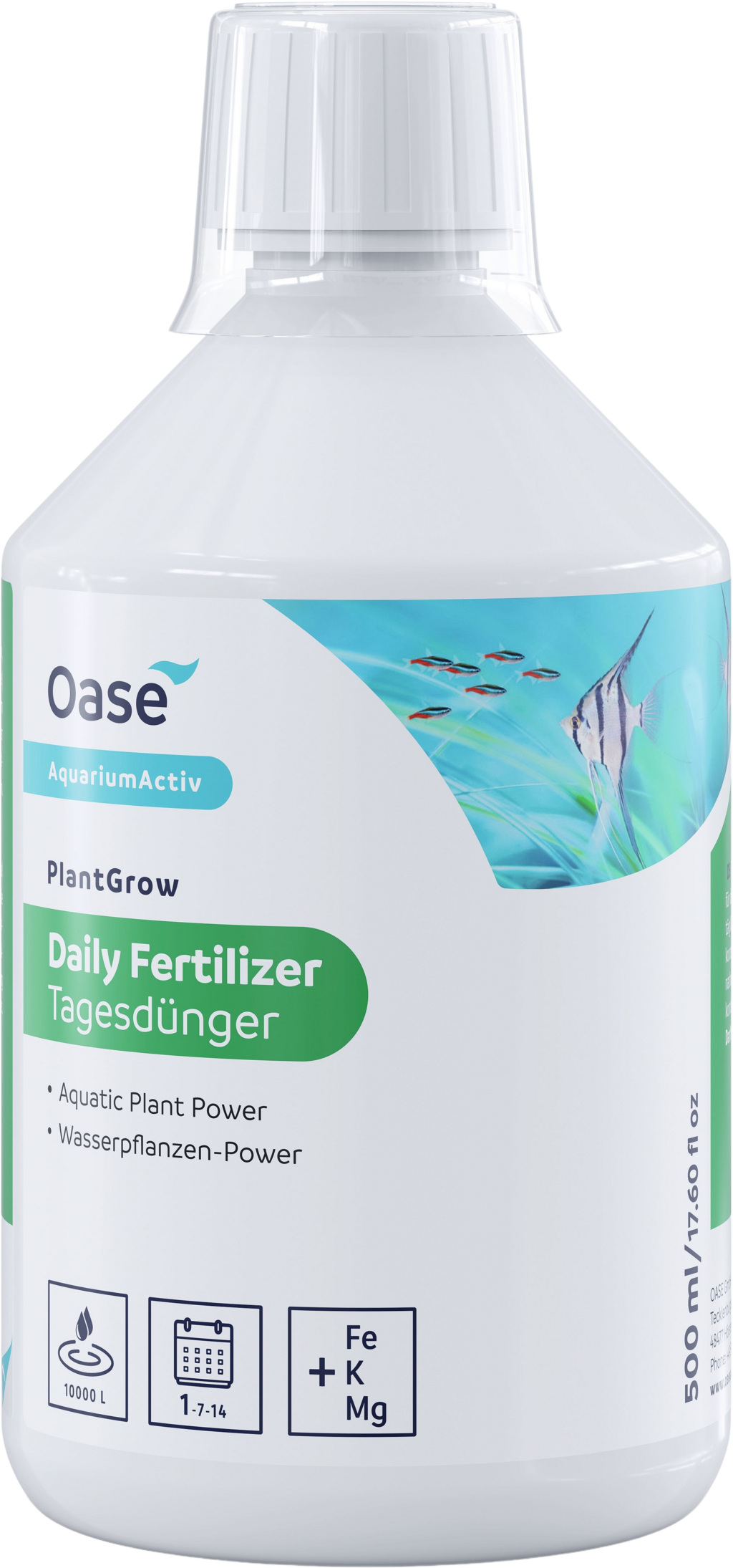 Detta gödselmedel är en effektiv blandning av högkoncentrerade näringsämnen: Järn, kalium och magnesium kompletterar snabbt utarmade, instabila mineraler i det dagliga behovet. De högkvalitativa komponenterna ger även krävande akvarieväxter en optimal försörjning: resultatet är en sund tillväxt utan bristsymptom som kloros etc. - växterna har ett livskraftigt och robust utseende. Preparatet innehåller inte fosfat för att skydda det känsliga ekosystemet och kan kombineras med PlantGrow depågödsel och veckogödsel från OASE.