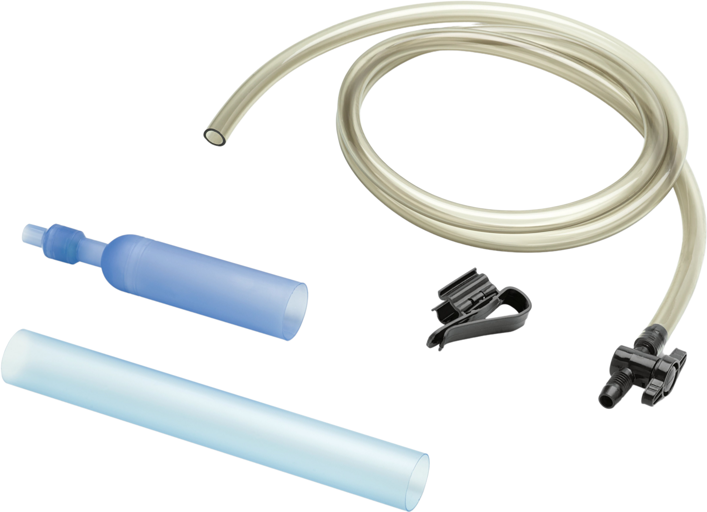 Säker fastsättning - tack vare det medföljande clipset fästs slangens ände på ett halkfritt sätt så att vattenbyten kan utföras torrt och utan missöden.