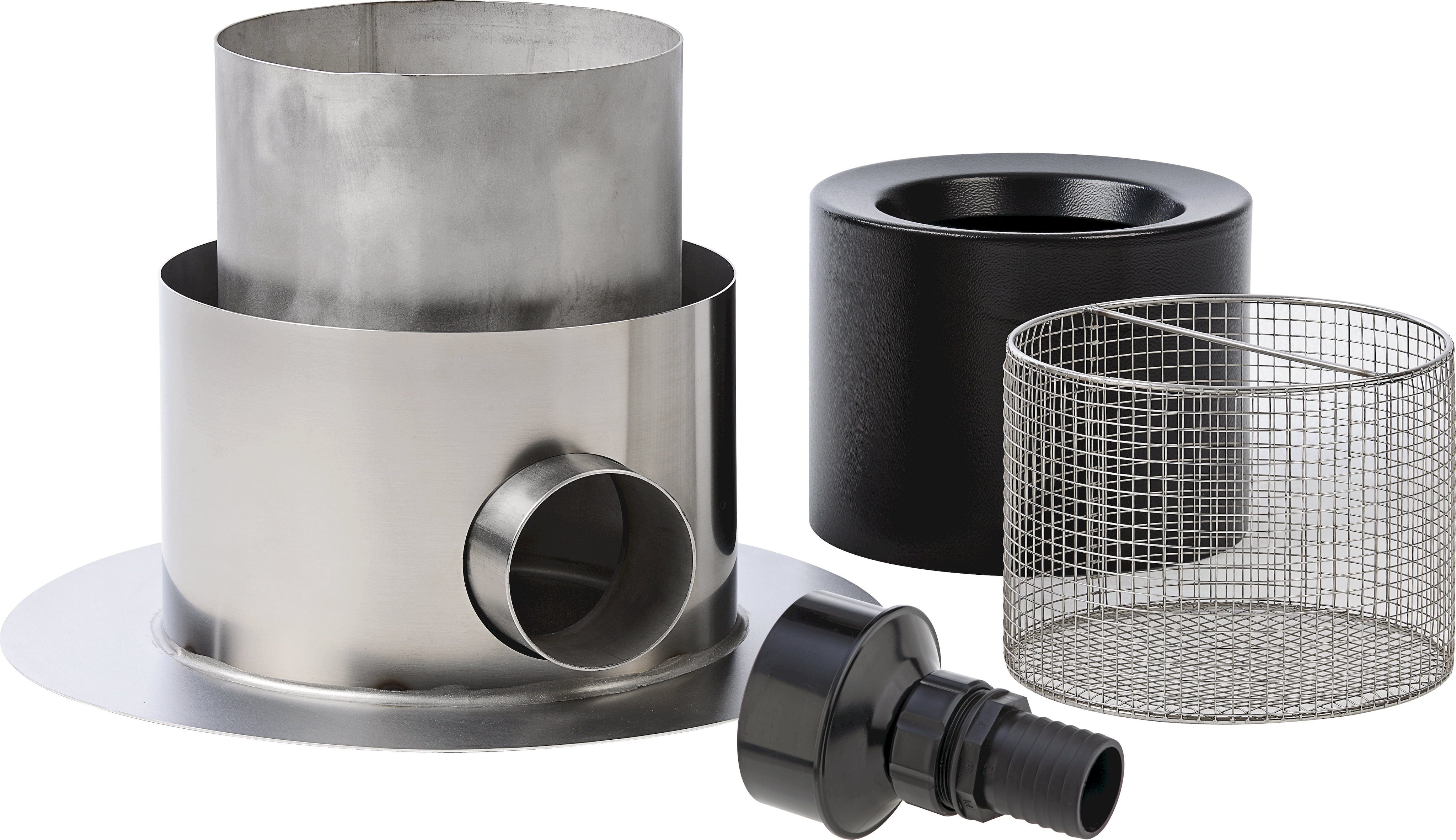 Skimmern kan integreras både i traditionella pumpsystem och i professionella gravitationsanläggningar. En massiv fot i rostfritt stål ger stabil placering på dammbotten och konstruktionen är anpassad för användning i grunda zoner. Den generöst dimensionerade uppsamlingskorgen i rostfritt stål med 8 mm maskvidd fångar även grövre smuts och tas enkelt upp för rengöring.