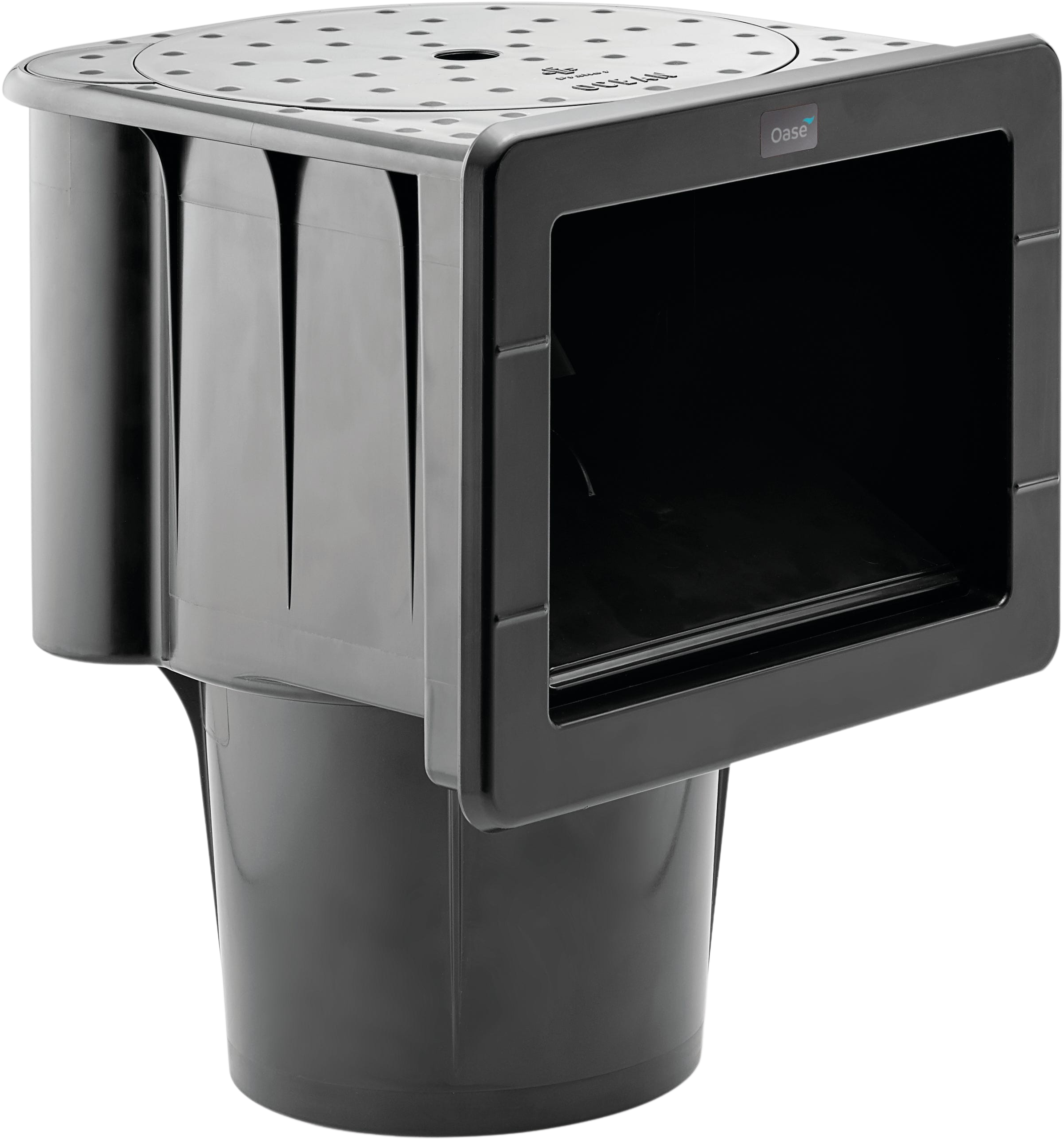 Den generösa DN 110-anslutningen ger optimalt vattenflöde och gör modellen väl lämpad för gravitationsfilter. Med tillval som förlängningar eller frontpaneler i rostfritt stål kan installationen anpassas efter din dammkant.