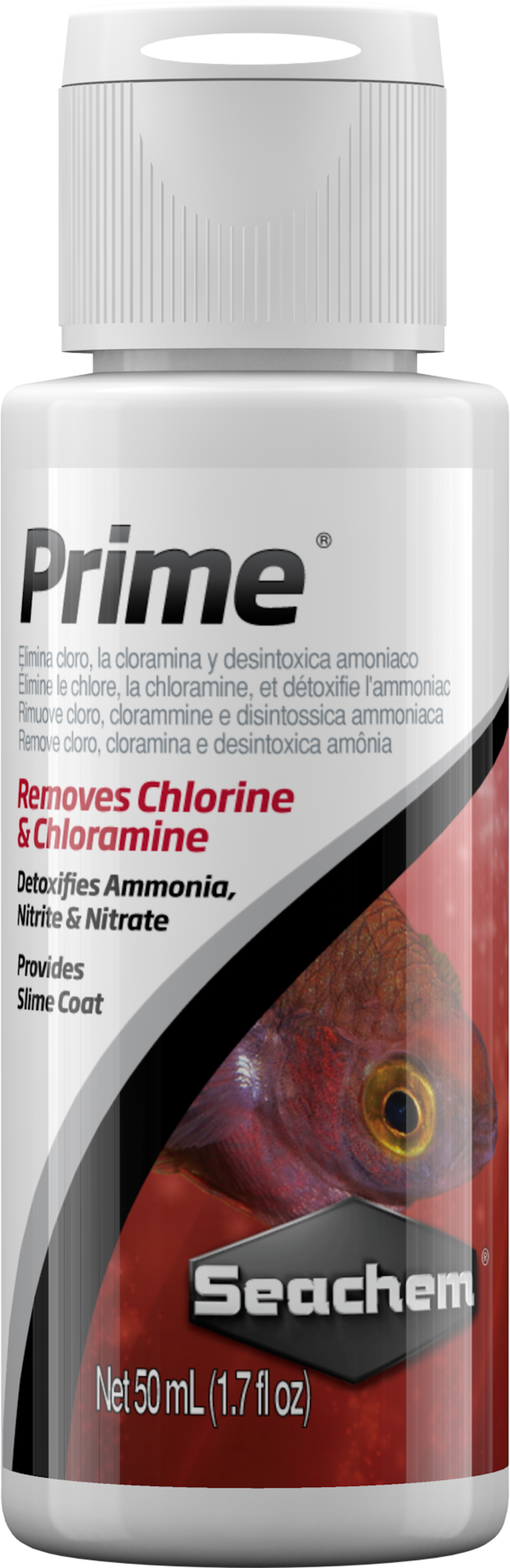Prime® är ett koncentrerat sötvatten- och havsvattenkonditioneringsmedel som tar bort klor och kloramin. Den använder ett bindemedel för att avgifta ammoniak, nitrit, nitrat och tungmetaller. Produkten är icke-sur och påverkar inte pH-värdena.