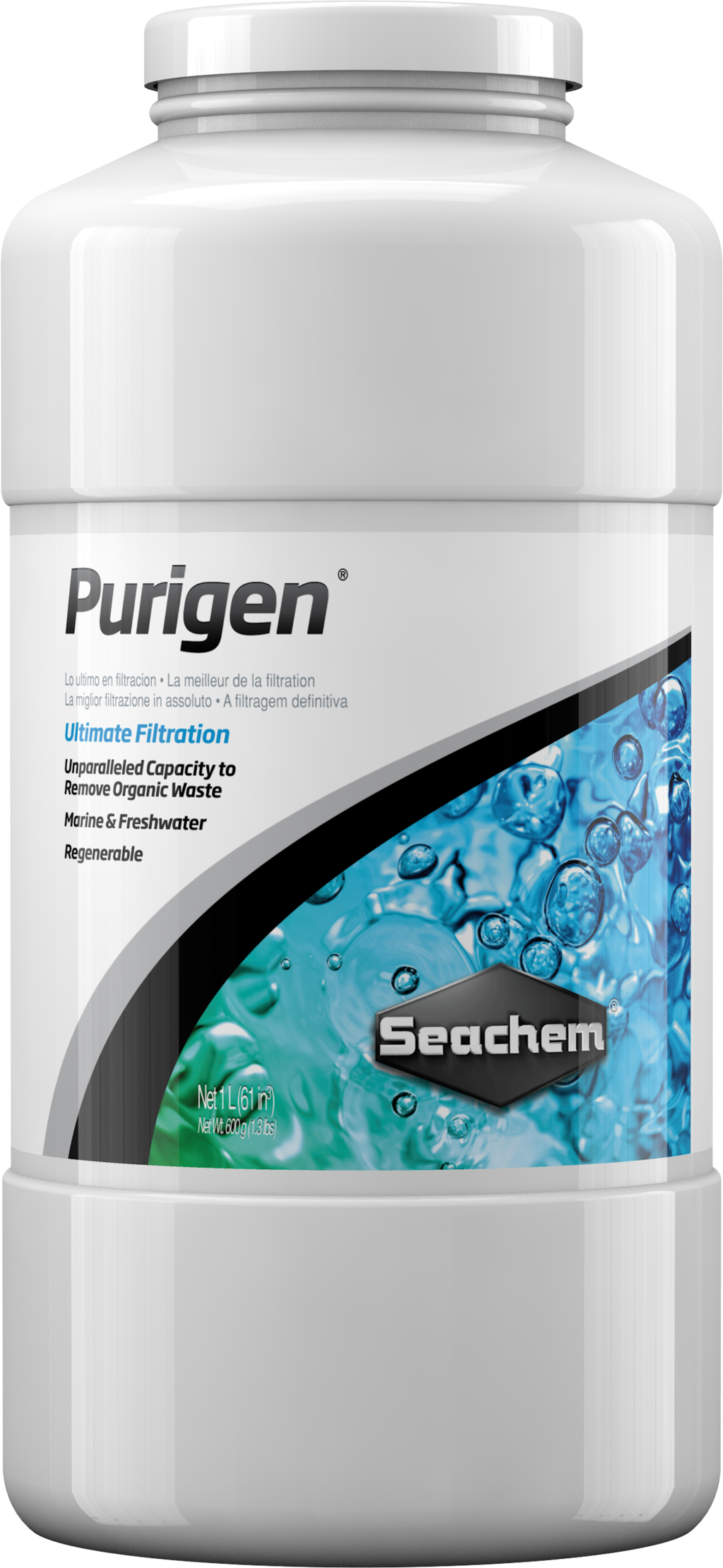 Purigen® är en syntetisk adsorbent av hög kvalitet och ett unikt organiskt rengöringsharts. Till skillnad från andra blandningar av jonbytare eller adsorbenter består Purigen® av en makroporös syntetisk polymer. Denna polymer tar snabbt och effektivt bort lösliga och olösliga föroreningar från vatten och överträffar kapaciteten och hastigheten hos konkurrerande produkter med mer än 500 %, enligt tillverkaren.