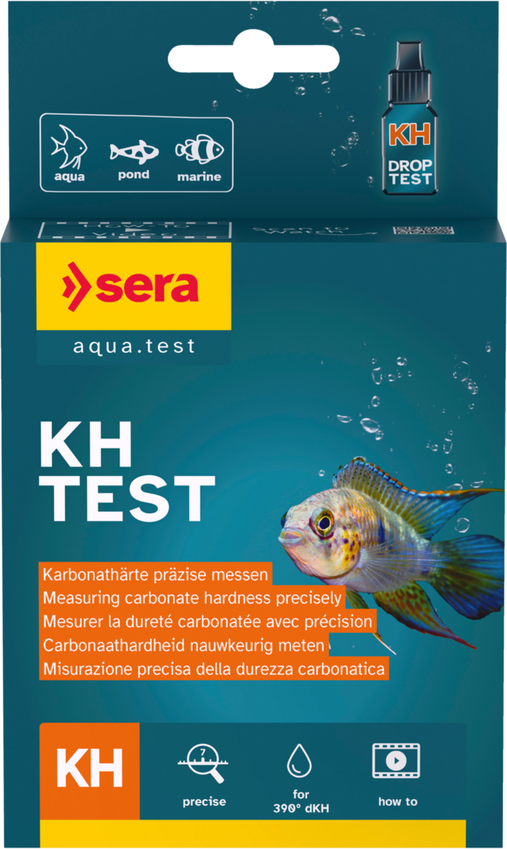Sera KH-testet är ett vattentest för att kontrollera KH-värdet i sötvatten- och marina akvarier samt i trädgårdsdammar.