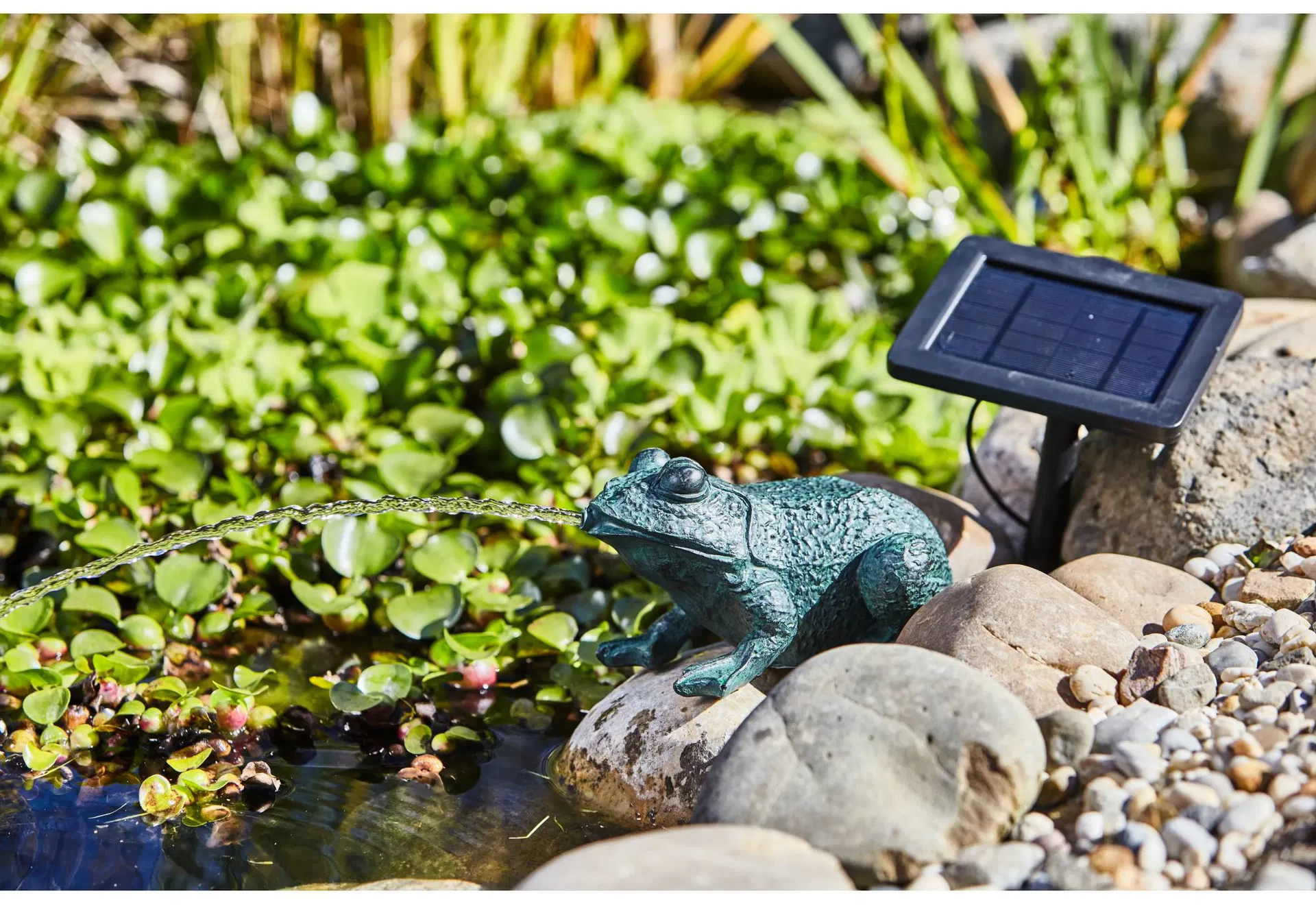 HEISSNER Solcells Dammfigur-Groda med Dammpump, 250 l/h