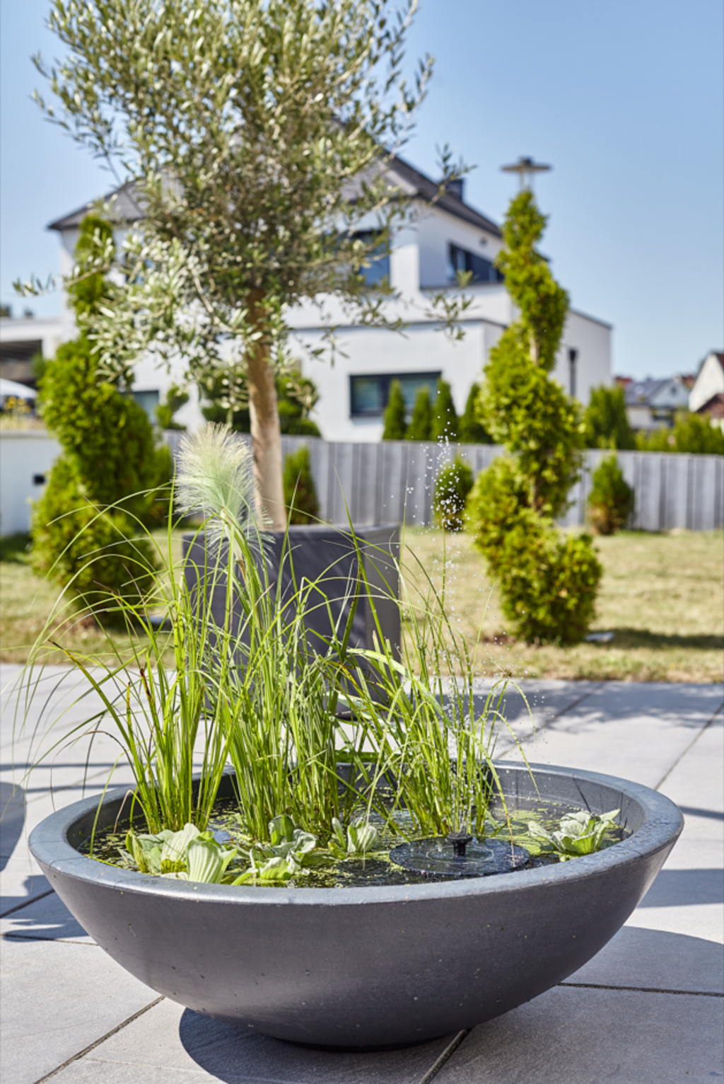 Denna HEISSNER vattenträdgård förvandlar varje utomhusmiljö till en rofylld oas och förbättrar märkbart mikroklimatet. Tack vare den soldrivna pumpen kan du njuta av det mjuka porlandet på ett miljövänligt sätt - helt utan elkostnader. Installationen är enkel: fyll på vatten, plantera växter och njut av naturen. Även på små ytor skapas ett estetiskt blickfång och en värdefull vattenkälla för nyttiga djur.