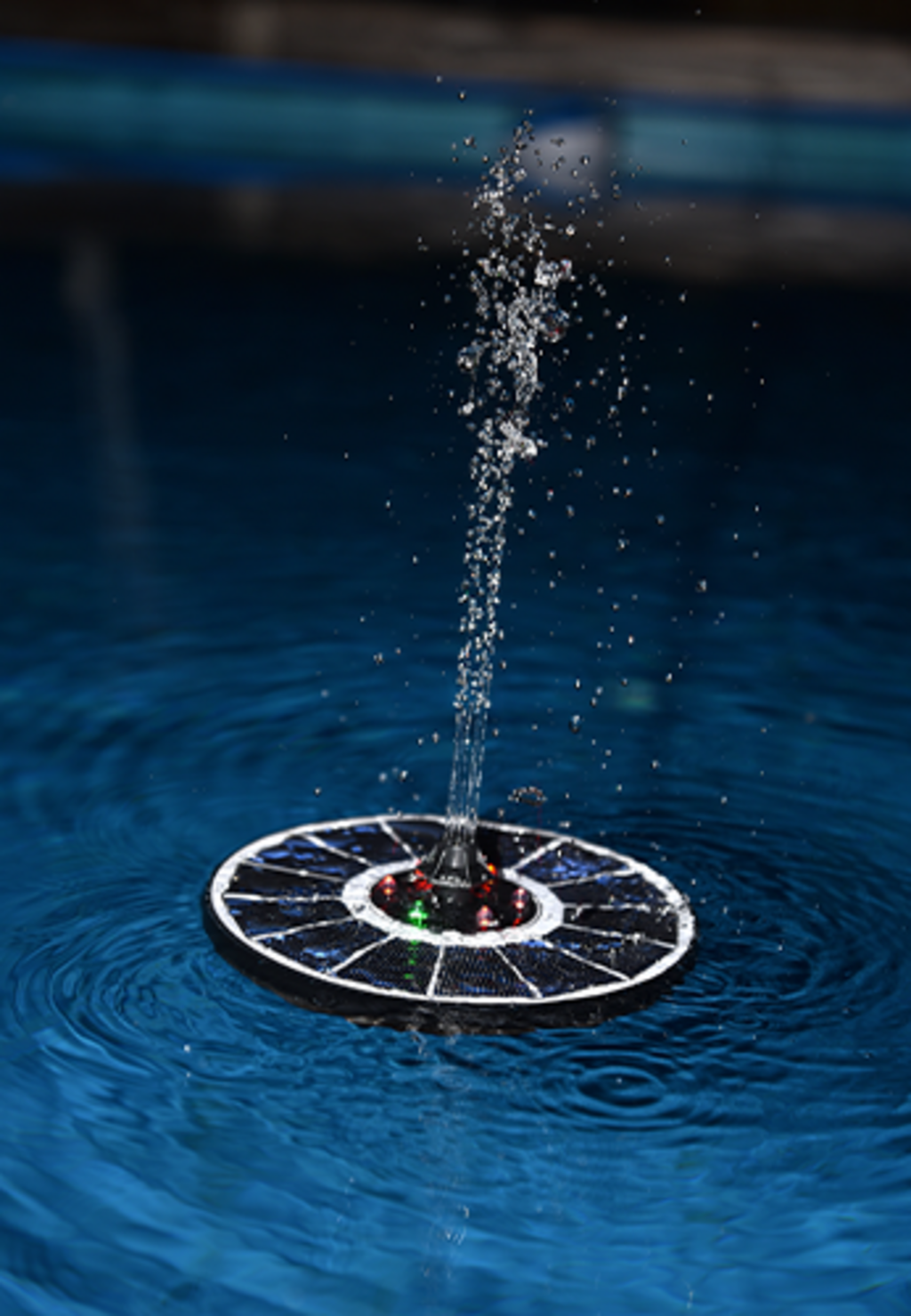 Denna energisjälvförsörjande solfontän från HEISSNER kombinerar dynamiska vattenspel med stämningsfull LED-belysning och förbättrar trädgårdsdammar, fågelbad eller pooler. Ett kraftfullt uppladdningsbart batteri lagrar panelens solenergi så att den integrerade skymningssensorn automatiskt aktiverar de färgade ljuseffekterna när det blir mörkt. Sju utbytbara tillbehör kan användas för att skapa skräddarsydda fontänmönster, medan de medföljande distanserna förhindrar okontrollerad drift mot poolkanten.
