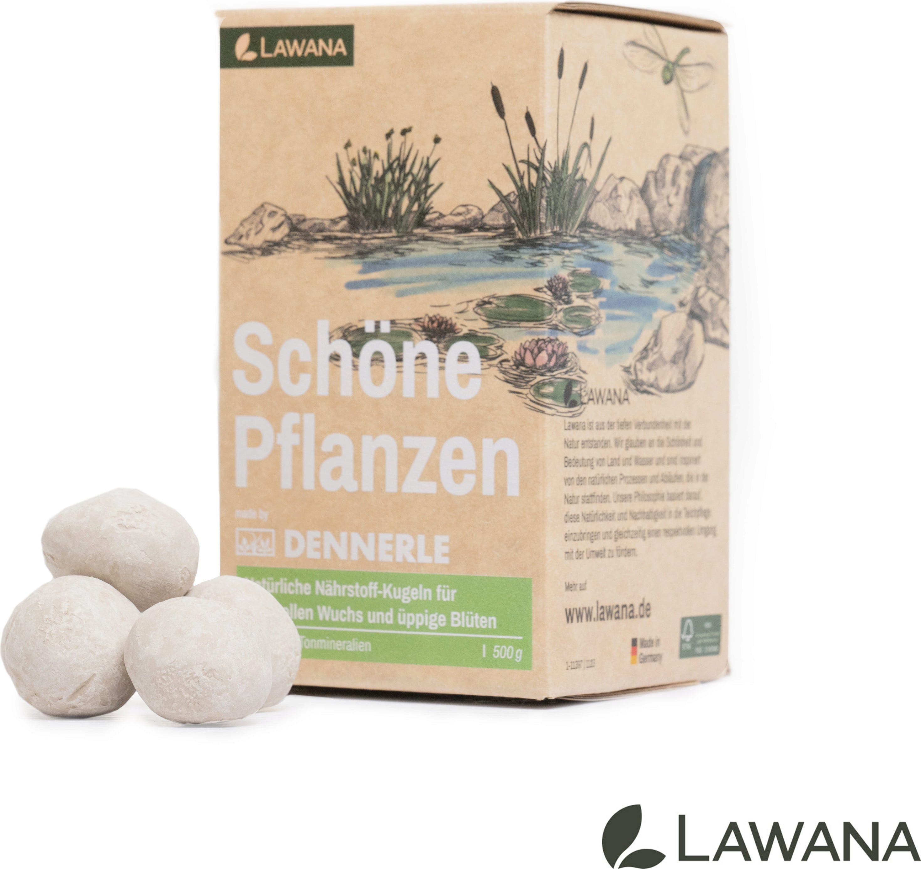 Med Vackra Växter - kulor från LAWANA ger du dina näckrosor och kantväxter optimala förutsättningar för en rik och frodig tillväxt. De naturliga lermineralerna fungerar som ett effektivt depålager för viktiga spårämnen och mineraler som bidrar till intensiv grönska och rik blomning. När du placerar kulorna direkt i rotområdet tillförs näringen exakt där den behövs utan att påverka det omgivande vattnet.