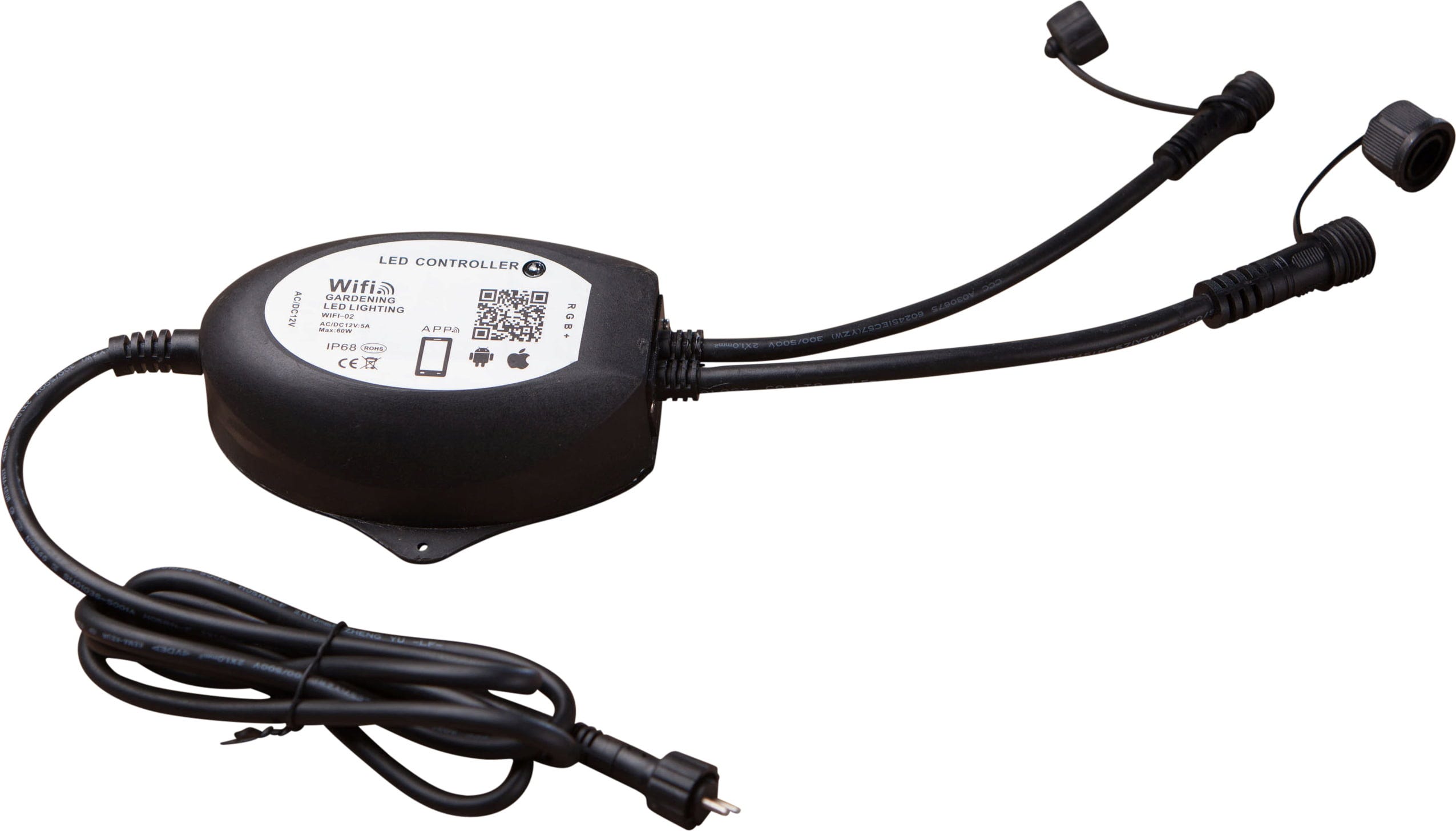 HEISSNER WiFi RGB Smart Light-styrenheten möjliggör intuitiv hantering av komplexa ljusscenarier i trädgårdar, dammar eller pooler direkt via smartphone. Förutom individuellt färgval och olika ljuslägen möjliggör den medföljande appen programmering av exakta timers och sömlös integration i smarta hemsystem som Alexa eller Siri. Den vattentäta modulen har en meterlång anslutningskabel med 2-poliga och 4-poliga kontakter och är oumbärlig när färgväxlande RGB-komponenter installeras utomhus.