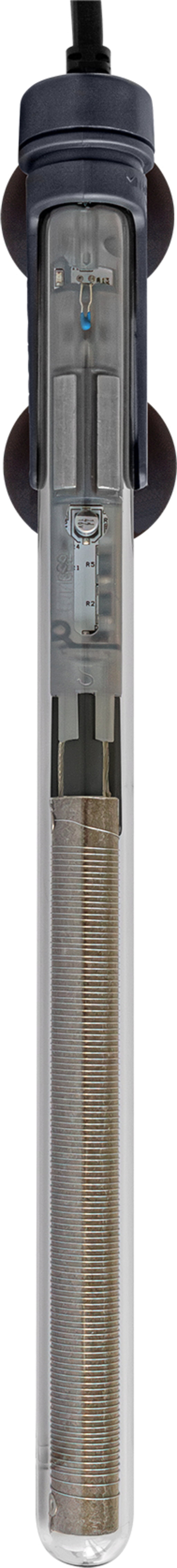 Med sin diskreta design smälter värmaren in i akvariets miljö utan att dra till sig onödig uppmärksamhet. Det tåliga säkerhetsglaset är anpassat för höga temperaturer och ger lång livslängd. En praktisk ON/OFF-indikator visar om värmaren är i drift.