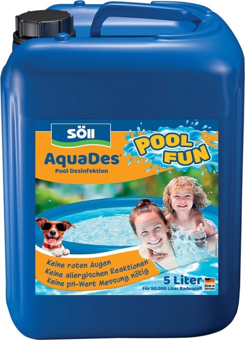 AquaDes från Söll är sommarens desinficeringsmedel! Produkten kan användas i pooler, plaskdammar och mindre simbassänger och bekämpar effektivt bakterier, svampar och sporer. AquaDes desinfektionsmedel för badvatten innehåller endast små mängder klor, men det är just den mängden som har en mer långvarig effekt än koncentrerad klor. Produktens flytande konsistens gör det enkelt att applicera den, utan att behöva mäta vattnets pH-värde i förväg.