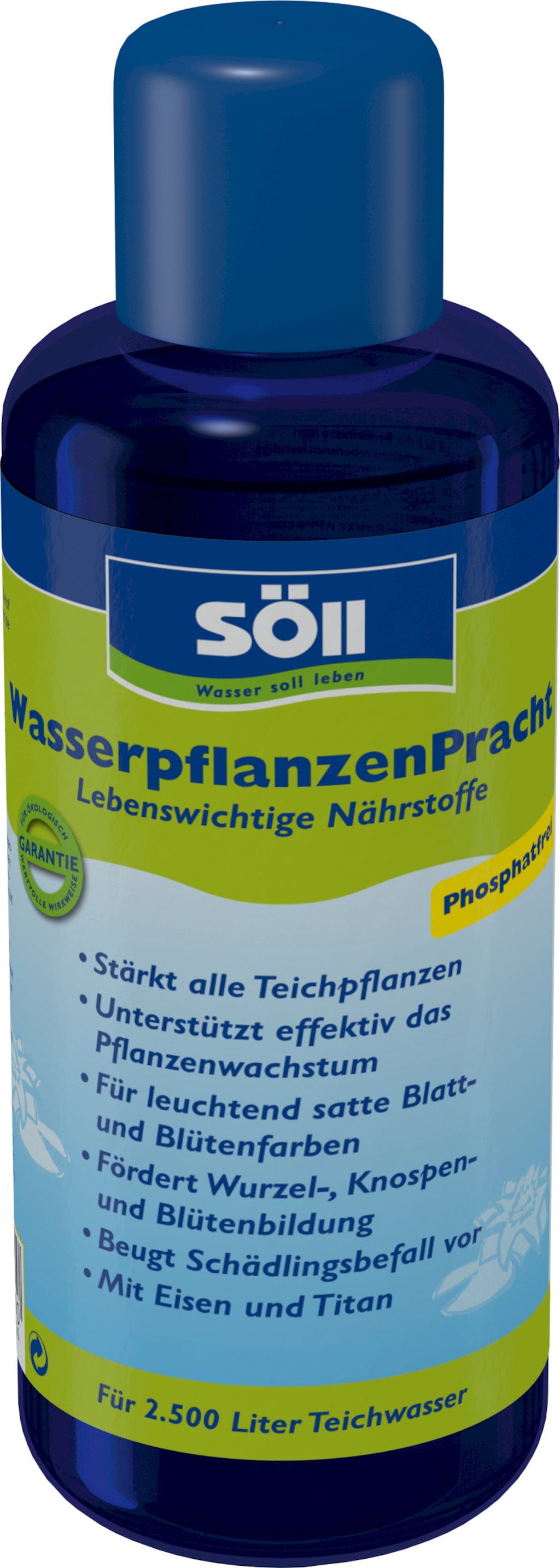 Vattenväxtprakt är berikad med makronäringsämnen och spårämnen som är speciellt anpassade för dammväxternas behov. Det fosfatfria preparatet utvecklar sin effekt direkt efter appliceringen, utan att stimulera algblomningen. Växter stärks i allmänhet av järn och titan: från rötterna till blommorna till knopparna. Vattenväxtprakten är också lämplig som förebyggande åtgärd mot skadedjur.