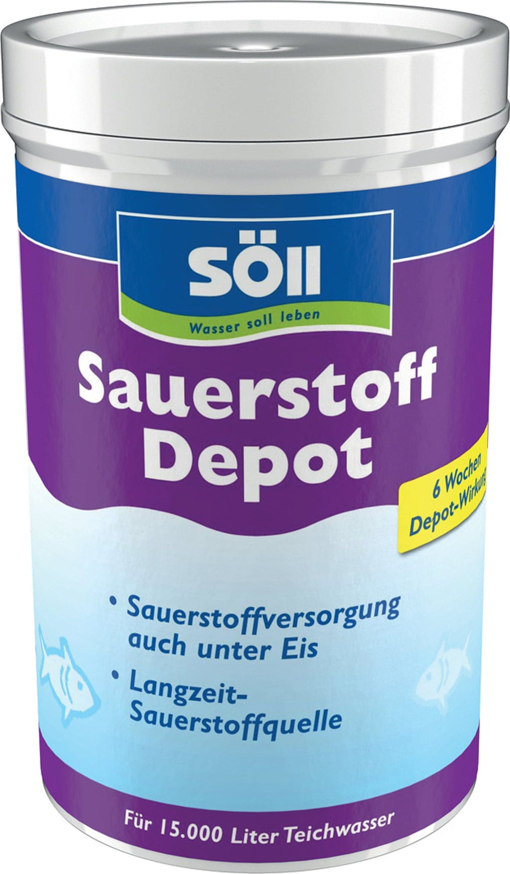 Med SauerstoffDepot Tabs från Söll säkerställer du att fiskar och nyttiga mikroorganismer har tillgång till syre året runt. Tabletterna fungerar som en långvarig syrekälla och avger kontinuerligt syre under flera veckor, vilket stärker hela vattenbiologin. Särskilt under kallare perioder när en ishinna bildas bidrar de till att upprätthålla syretillförseln även under istäcke.