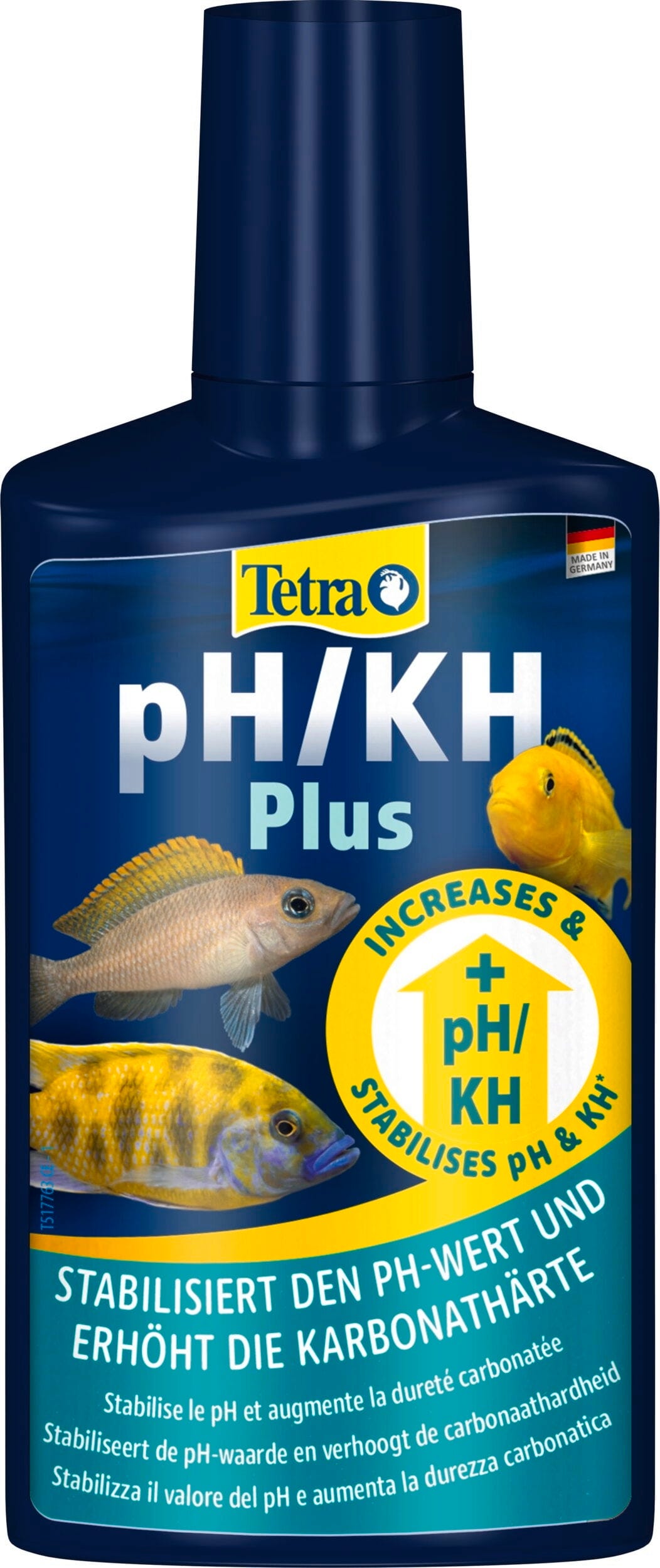 Med Tetra pH/KH Plus kan du ta hand om vattenkvaliteten i ditt akvarium och skapa en miljö där dina husdjur känner sig helt trygga. Med produkten kan du höja karbonathårdheten med exakt precision, vilket i sin tur fungerar som en tillförlitlig buffert för ett stabilt pH-värde. En plötslig minskning av surhetsgraden, som kan vara farlig för dina fiskar, kan därmed förhindras.
