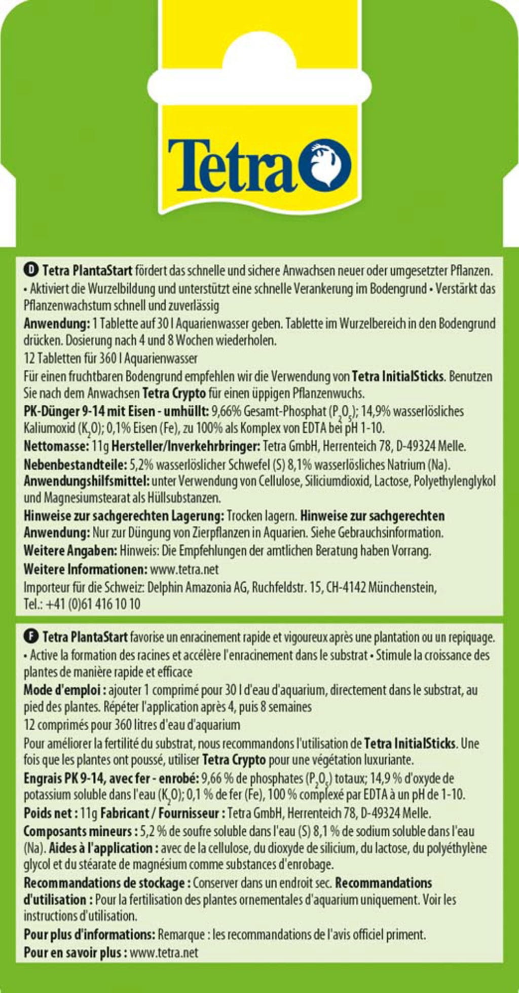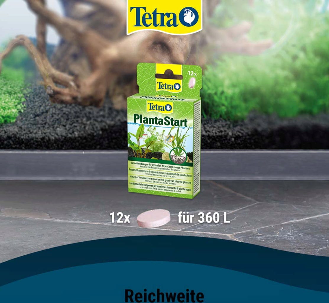 Tetra Planta Start är gödseltabletter för fantastiska vattenväxter. Nyplanterade vattenväxter förses särskilt med alla viktiga näringsämnen. Tillväxten stärks med ett värdefullt växthormon och rotbildningen aktiveras. Tetra PlantaStart stärker motståndskraften med makronäringsämnen och gödslar specifikt via rötterna.
